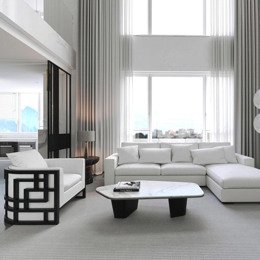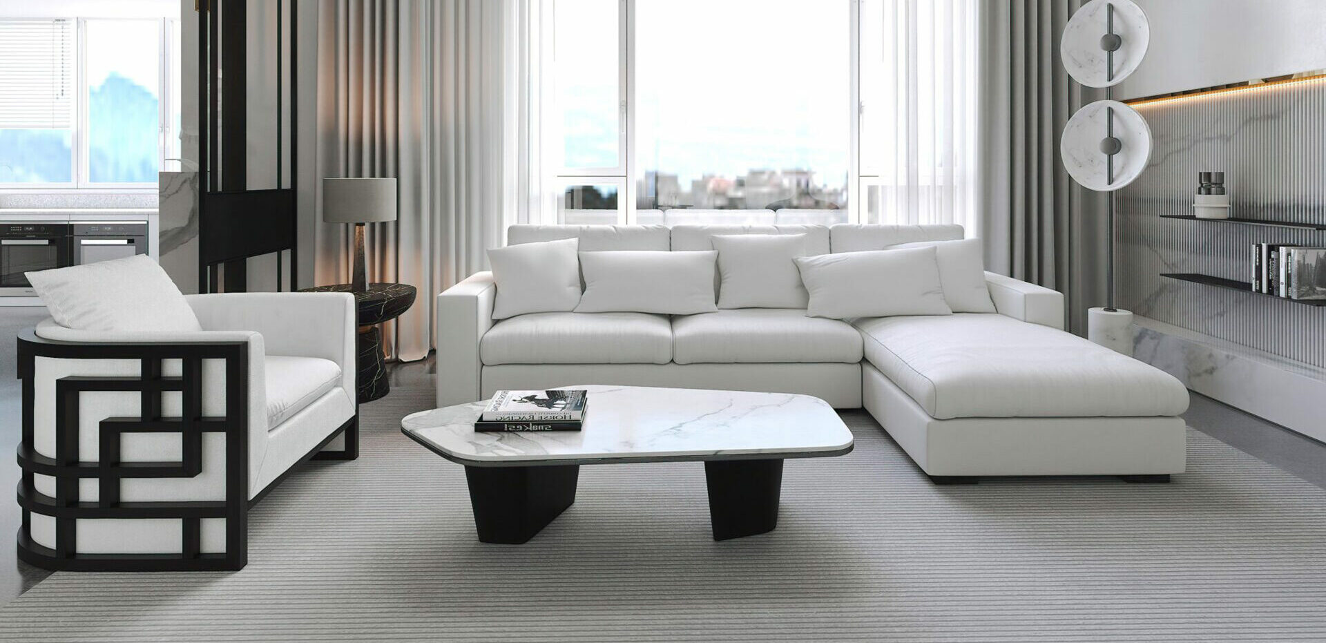 Monochrome beauty. Our beautiful Phoebe sofa and Grace Armchair in a matching white fabric make a stunning living room set. The fabric is soft and luxurious, whilst still being extremely hard wearing.