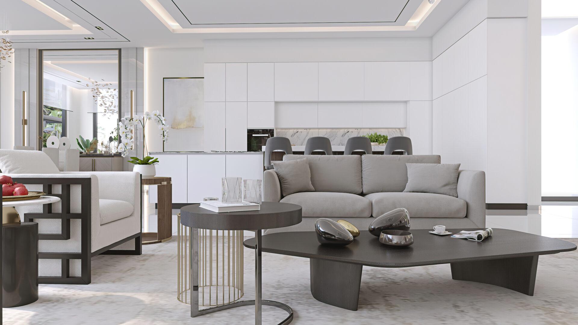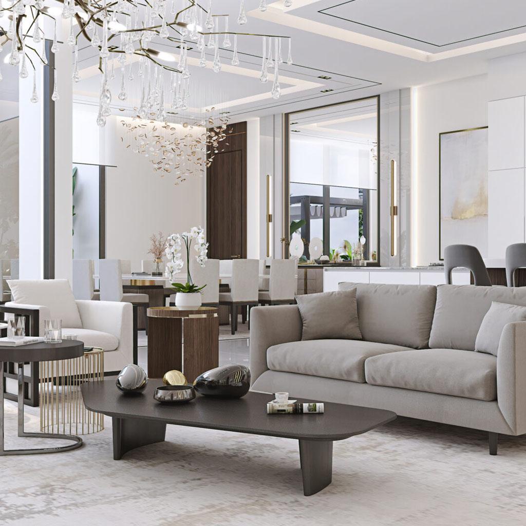 A wonderful pair. The intricate Grace armchair works perfectly alongside the more simple Dee sofa. The monochrome colour palette creates an eye-catching yet soft look.