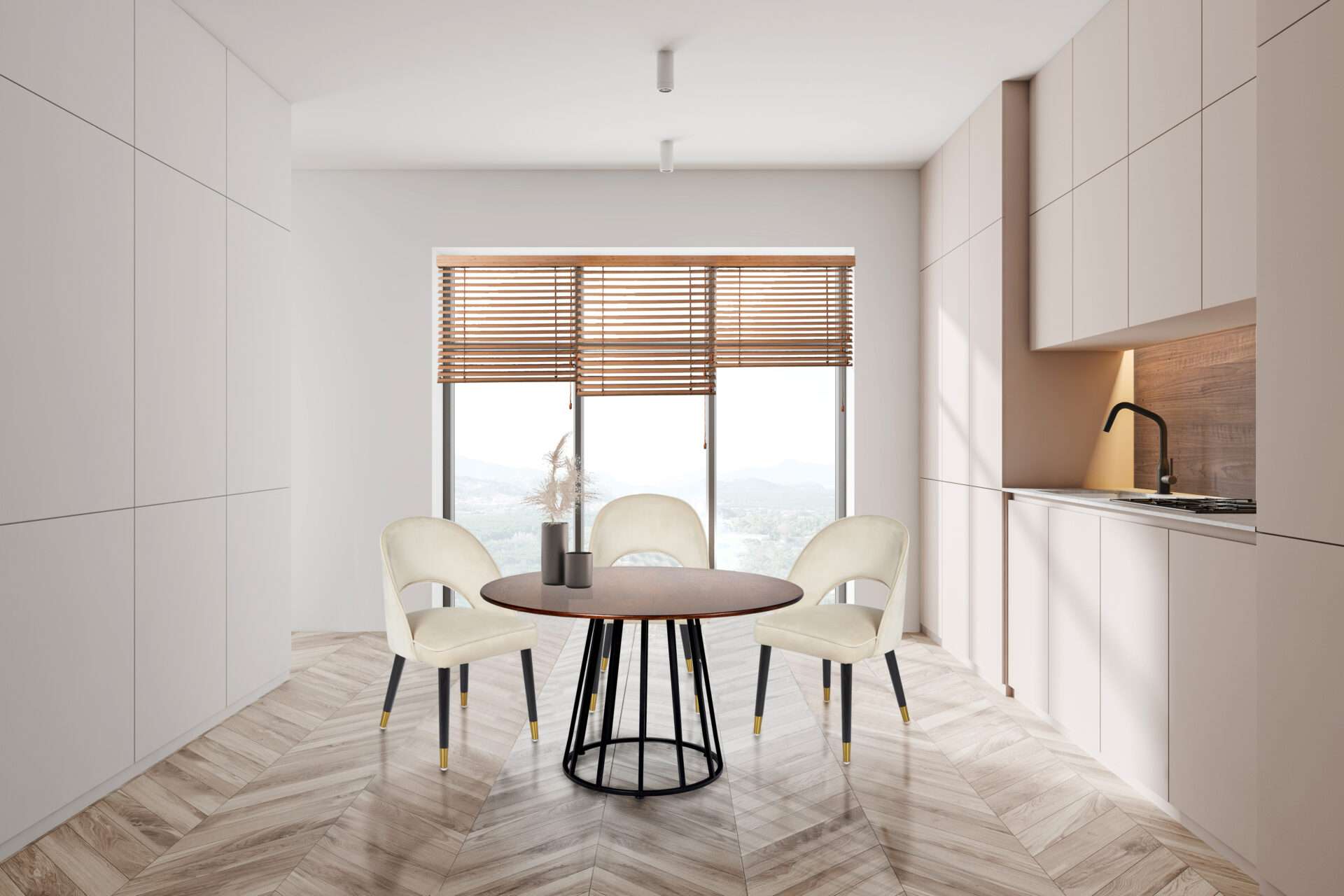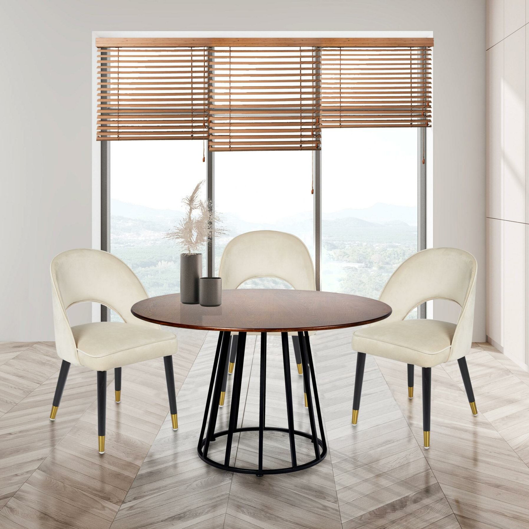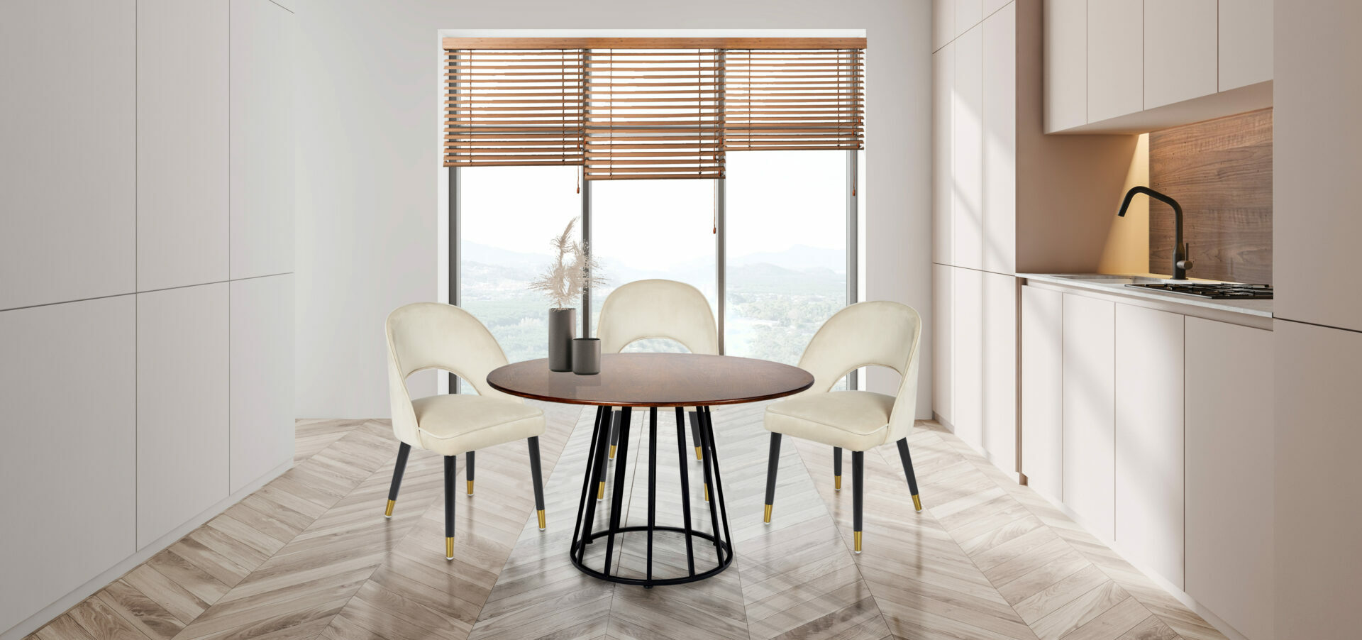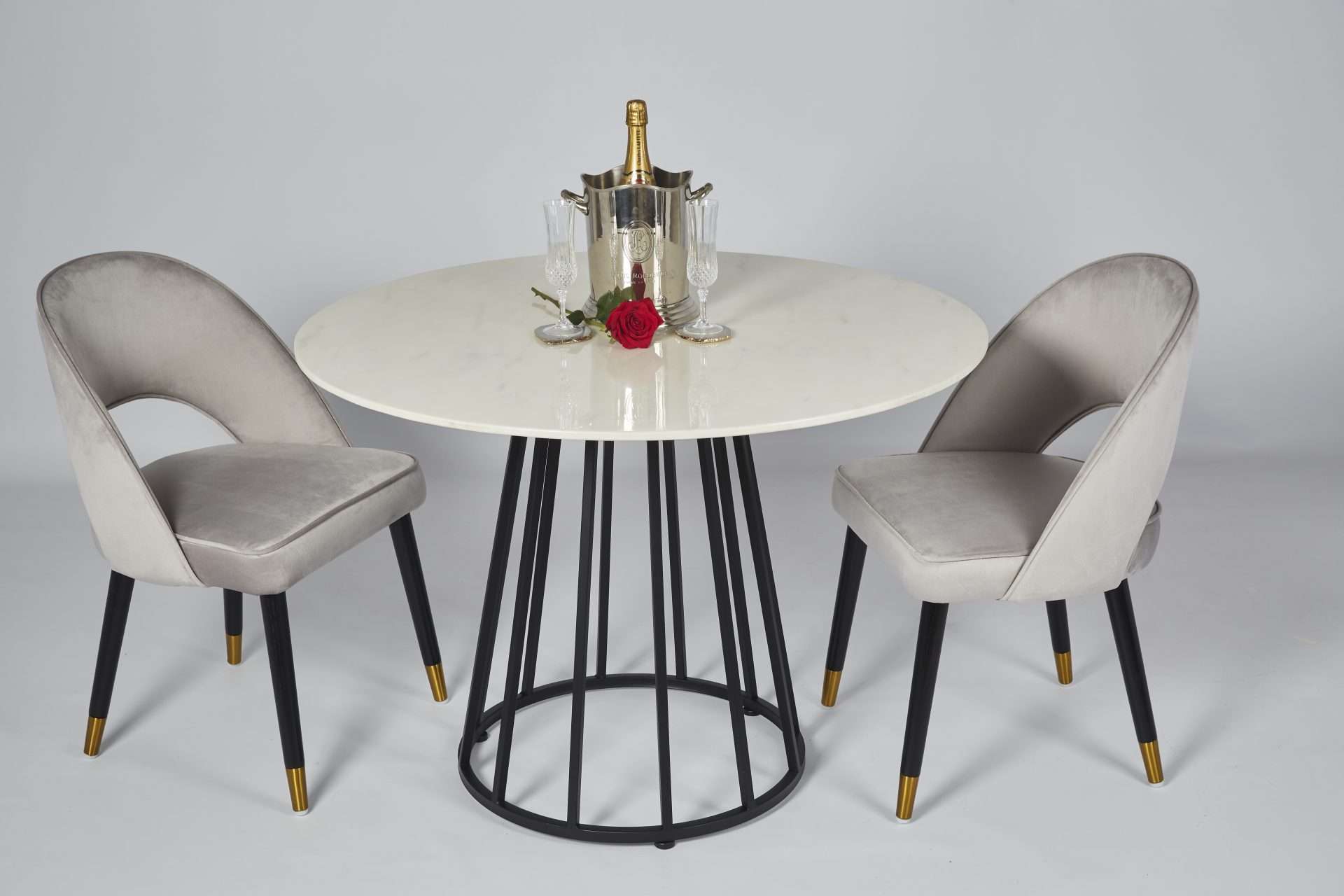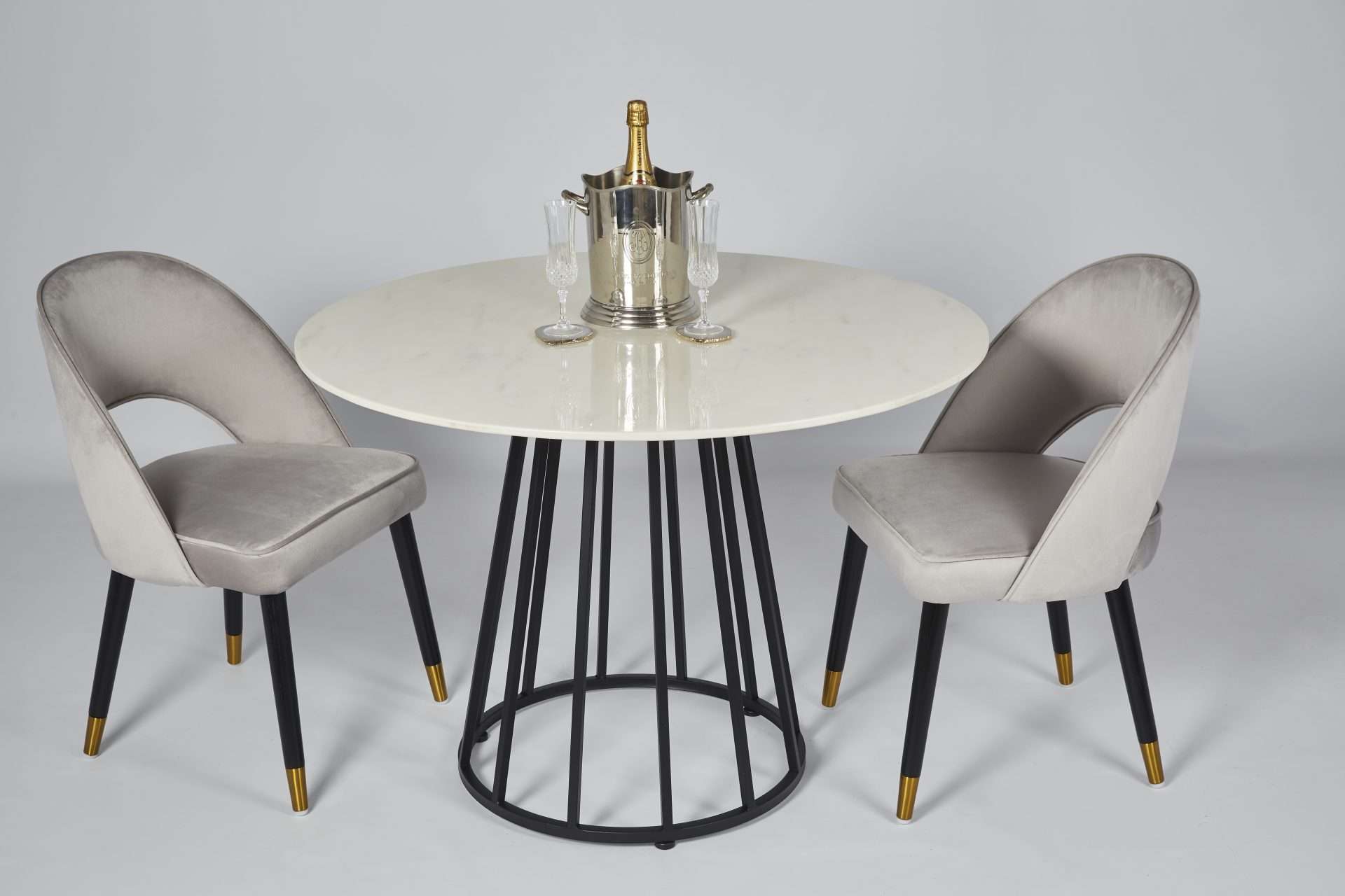 For the perfect dinner parties and the everyday meals, this dining table set is stunning. Our Darcie dining table and Colby dining chairs are a perfect match together. Our Darcie dining table fits up to 4 chairs and is wipe clean. Our Colby chairs are designed with comfort and practicality. With our velvet that is hard-wearing with over 100,000 thread counts, our Colby chair is one of our most popular designs.
