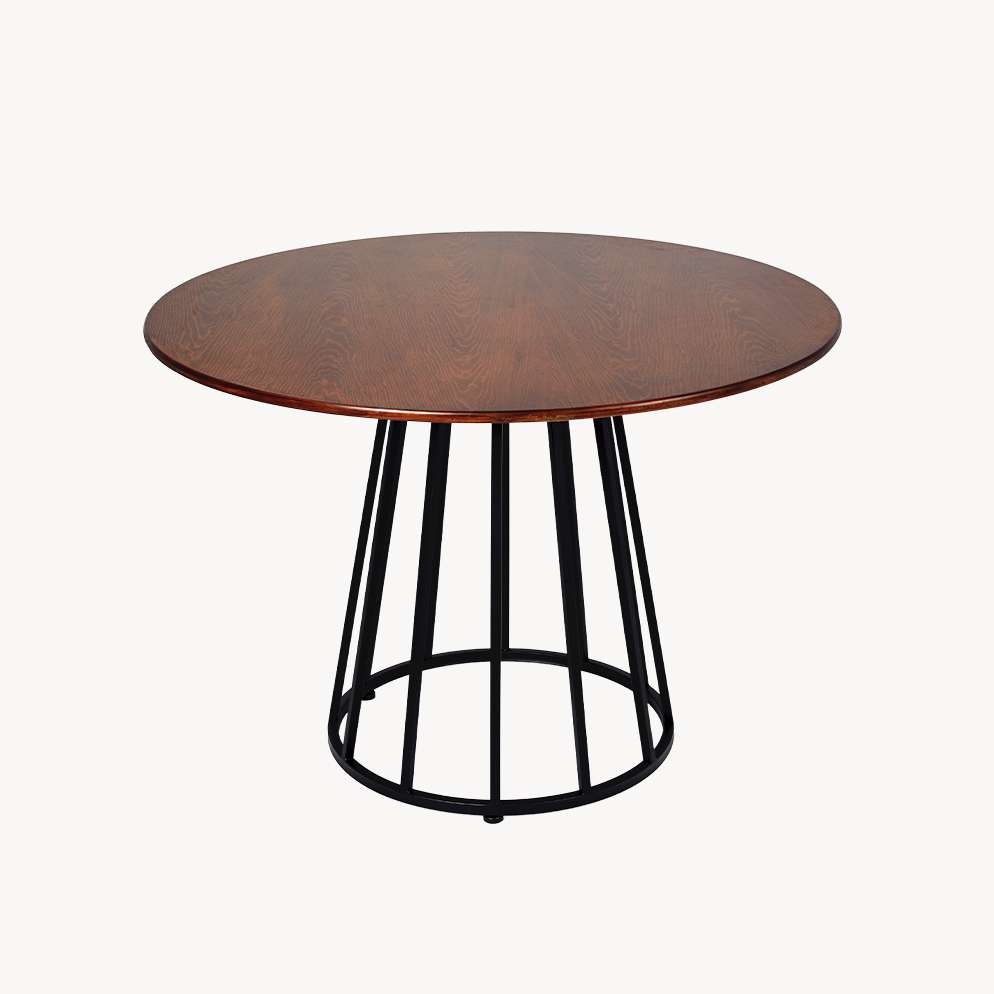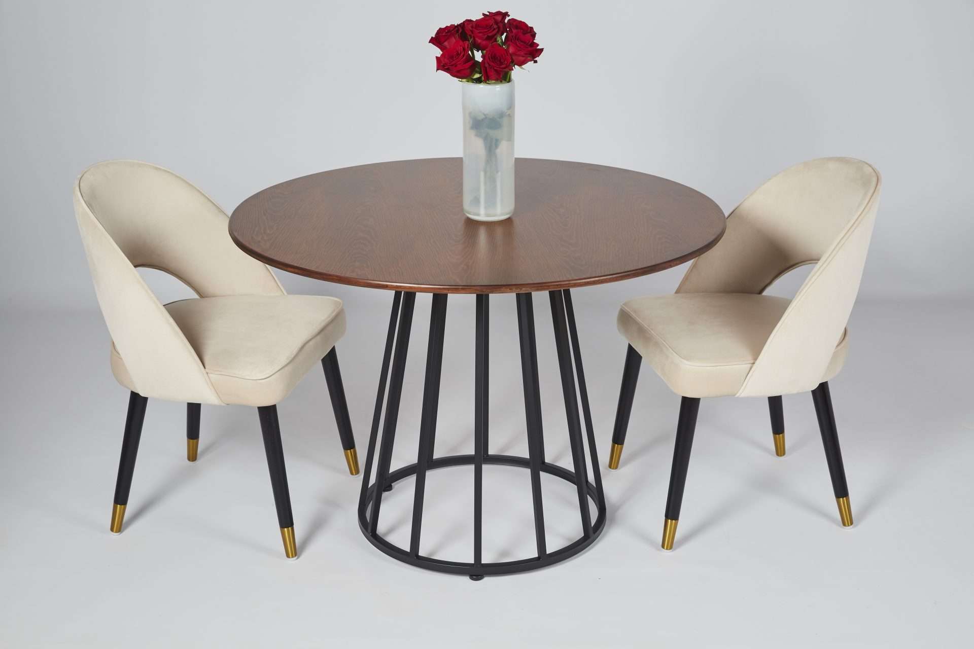 The Darcie! Perfect for those smaller spaces. This round dining table comfortably fit 4 chairs and would fit in any kitchen or dining area. This is the brown wood option with black metal base but we have the faux marble option also or get in touch for custom combinations.