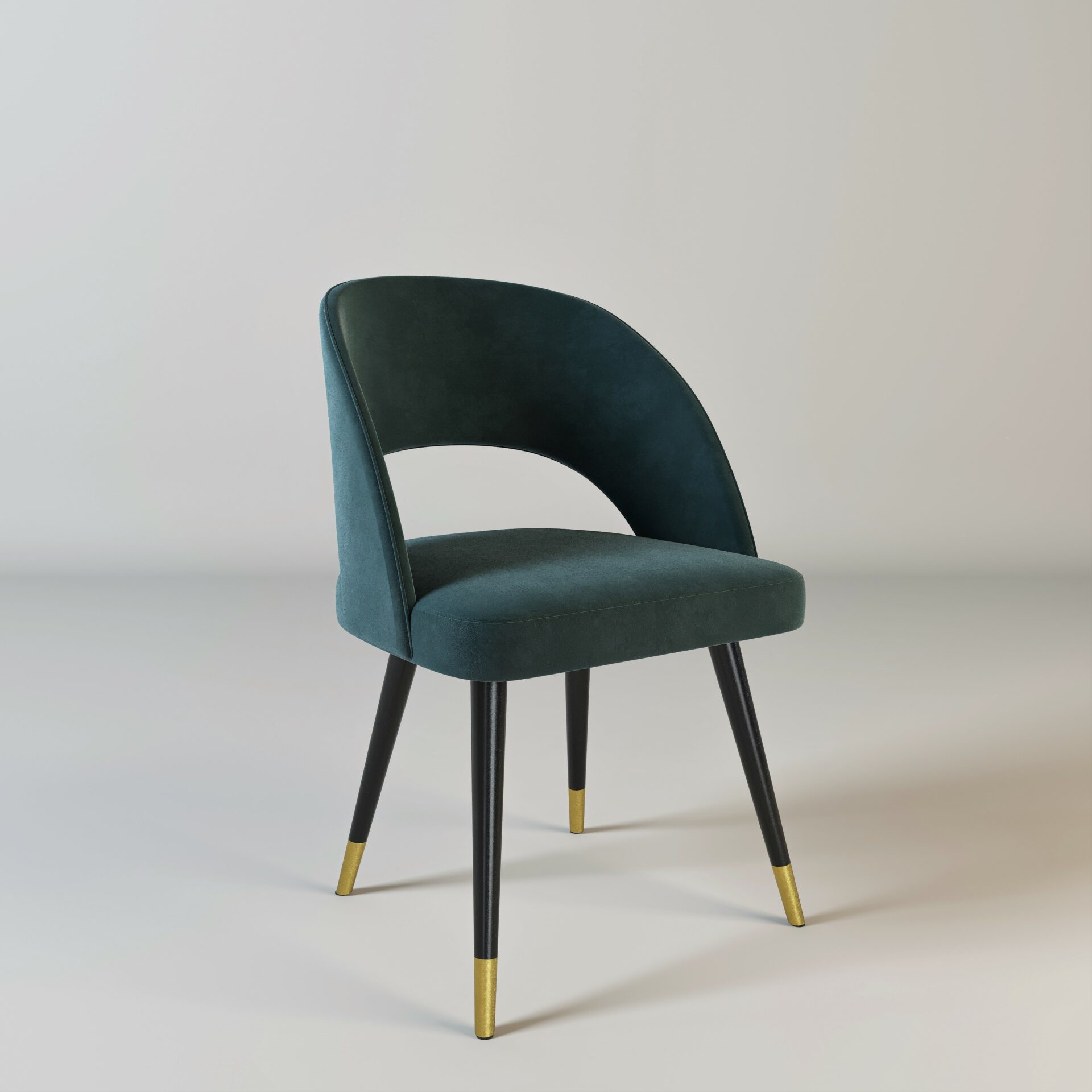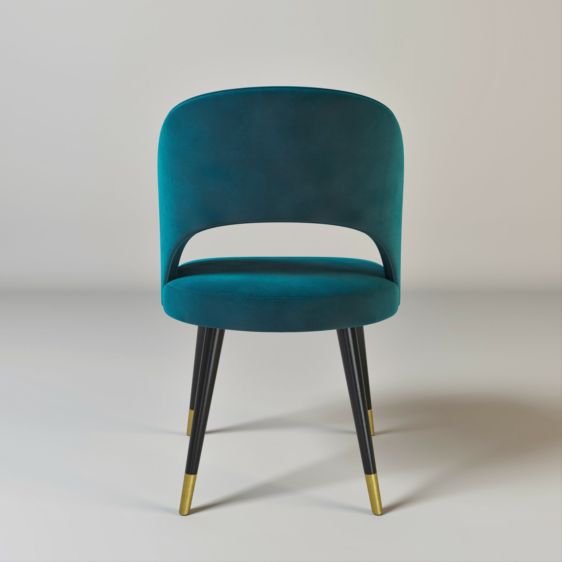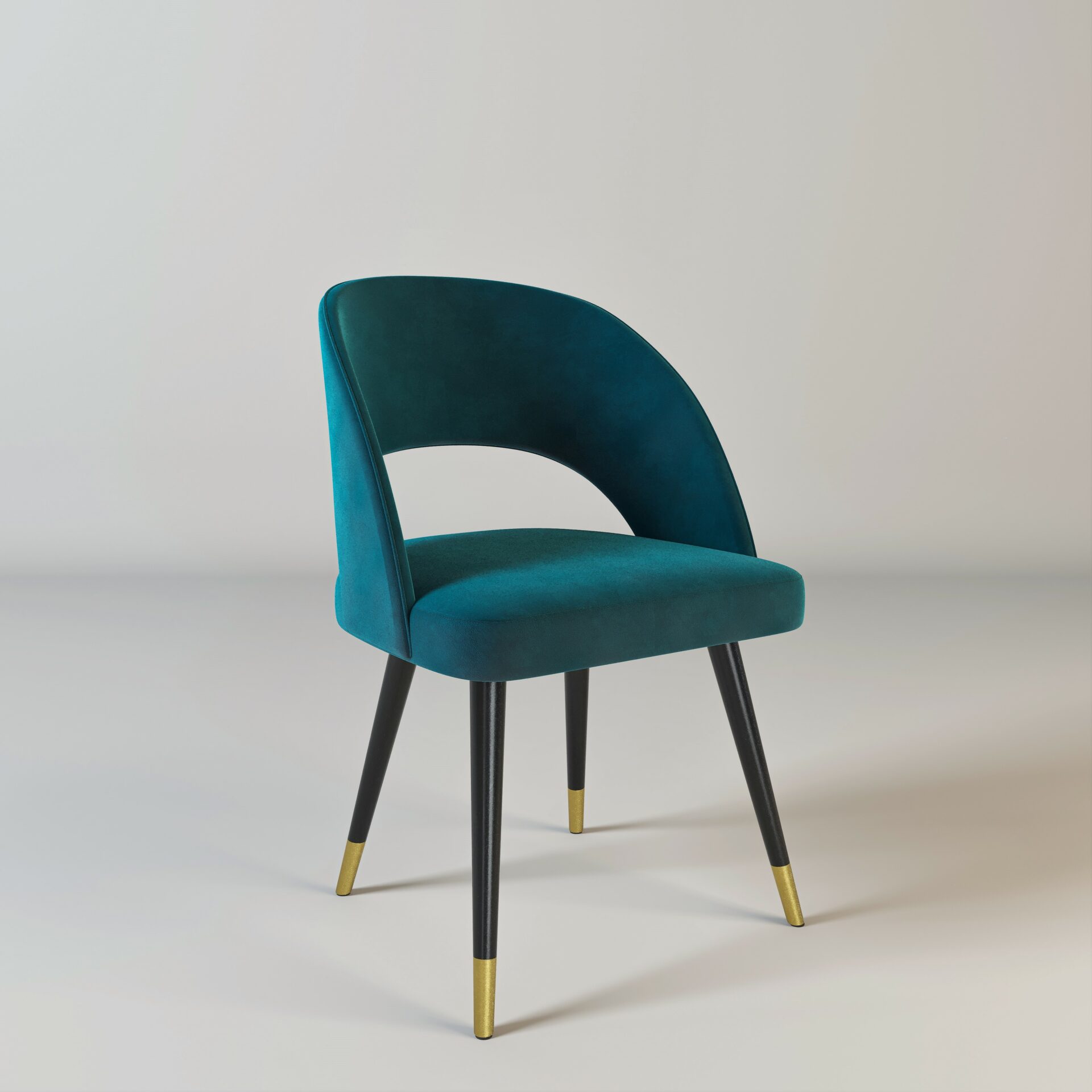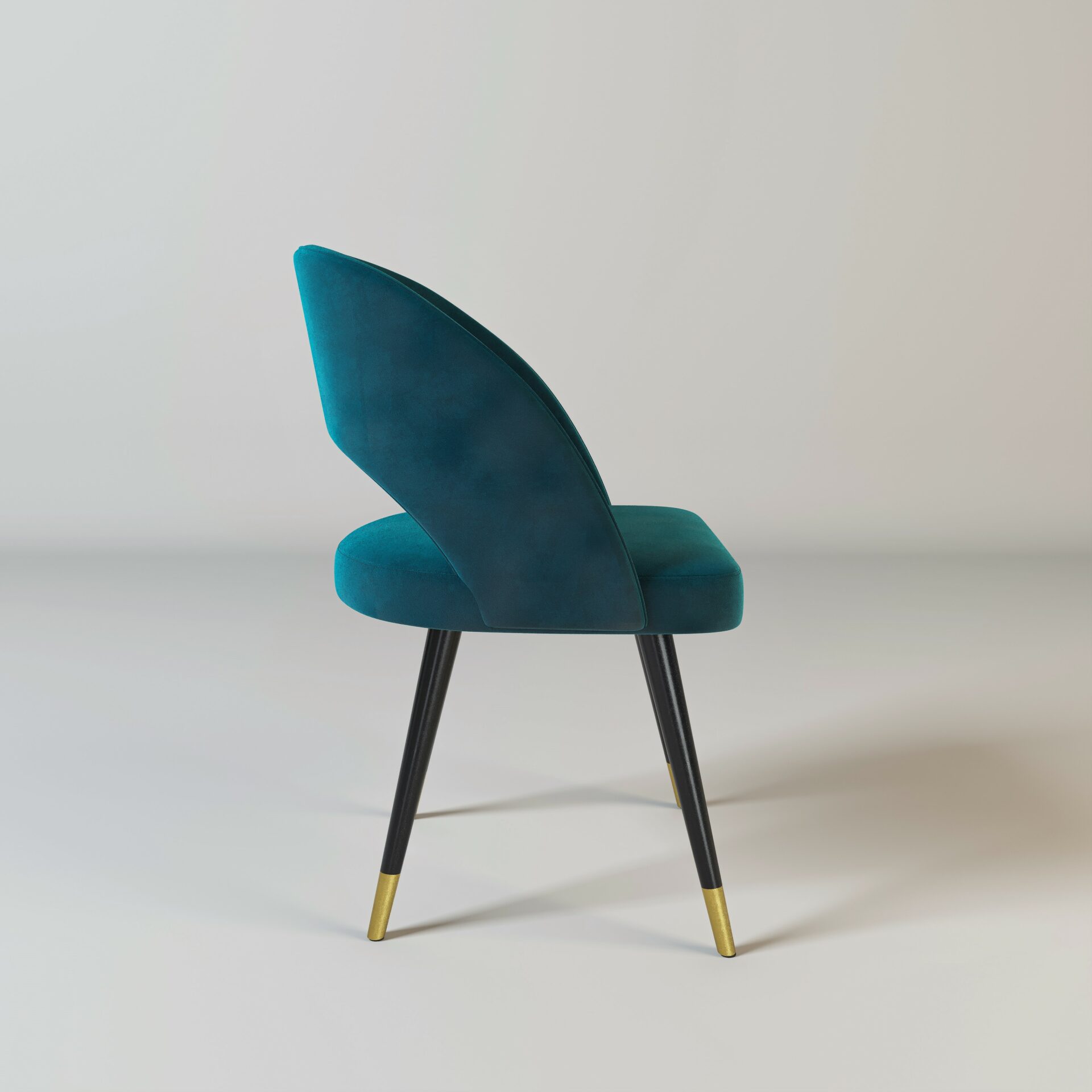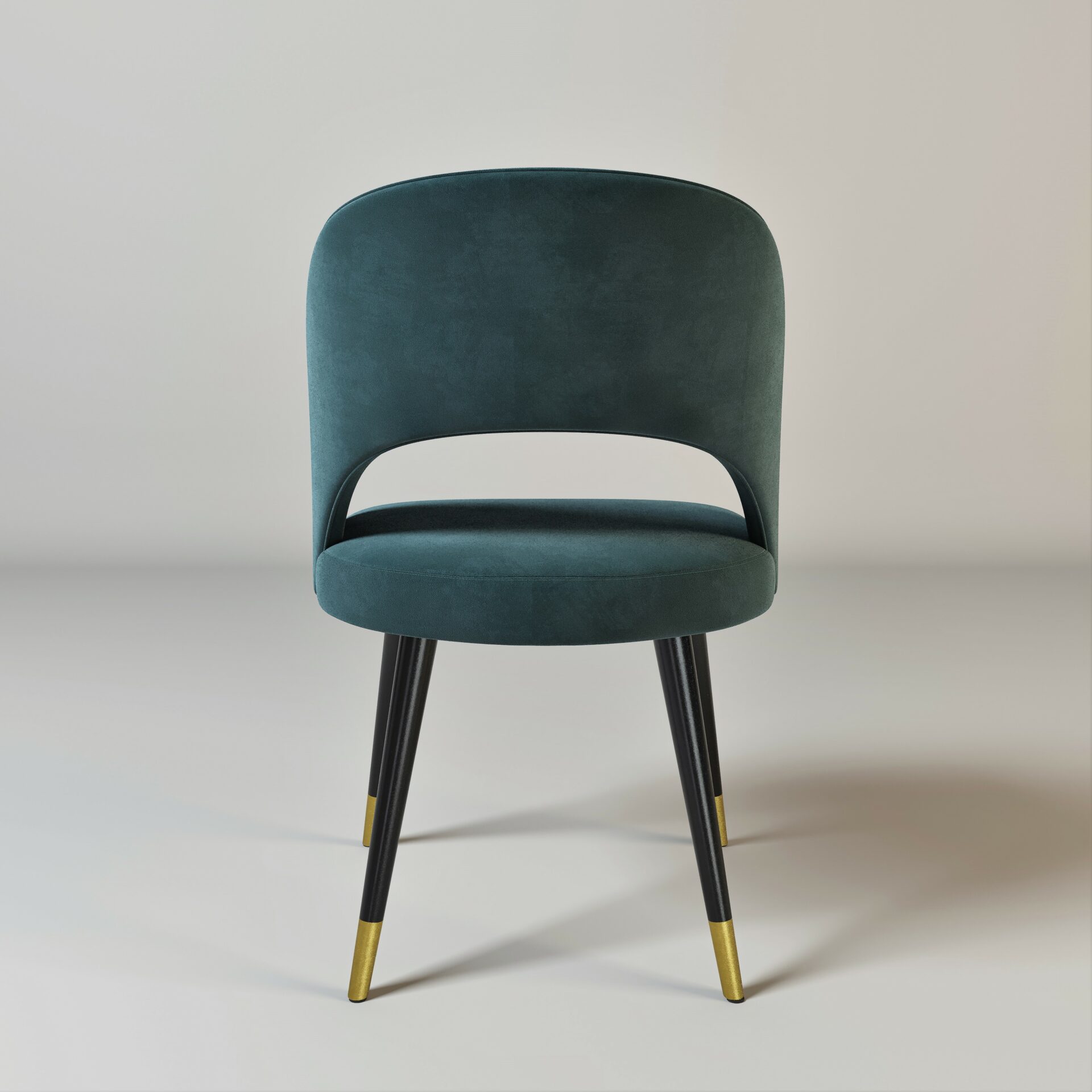The Colby! A stunning and classic dining chair made with the highest quality velvet along with handmade wooden legs finished with stunning champagne gold tips. Incredibly stylish yet understated and perfect for any kitchen or dining area. This is the absolutely beautiful and unique peacock colour but please check out the other colour options available, to make the perfect choice for your style!