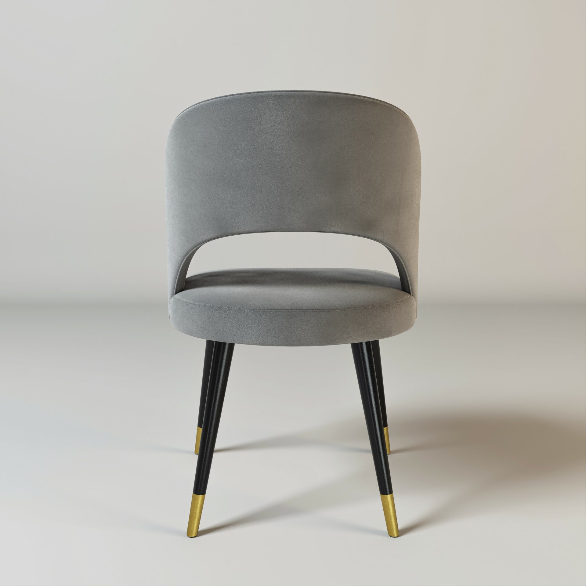 The Colby! A stunning and classic dining chair made with the highest quality velvet along with handmade wooden legs finished with stunning champagne gold tips. Incredibly stylish yet understated and perfect for any kitchen or dining area. This is the subtle dark grey but please check out the other colour options available, to make the perfect choice for your style!