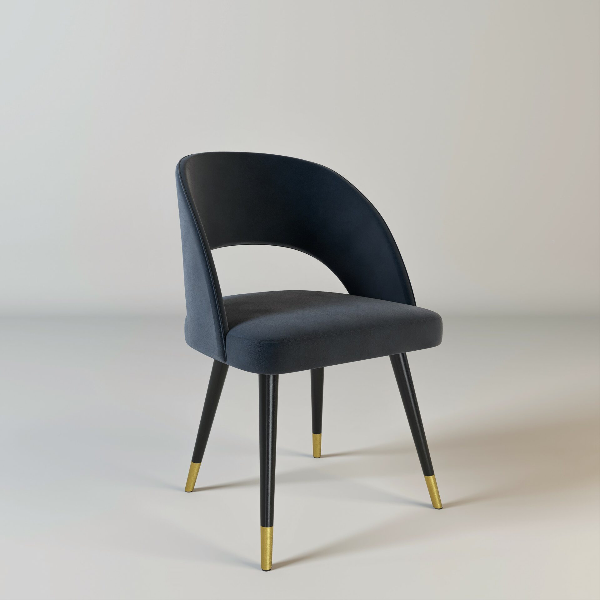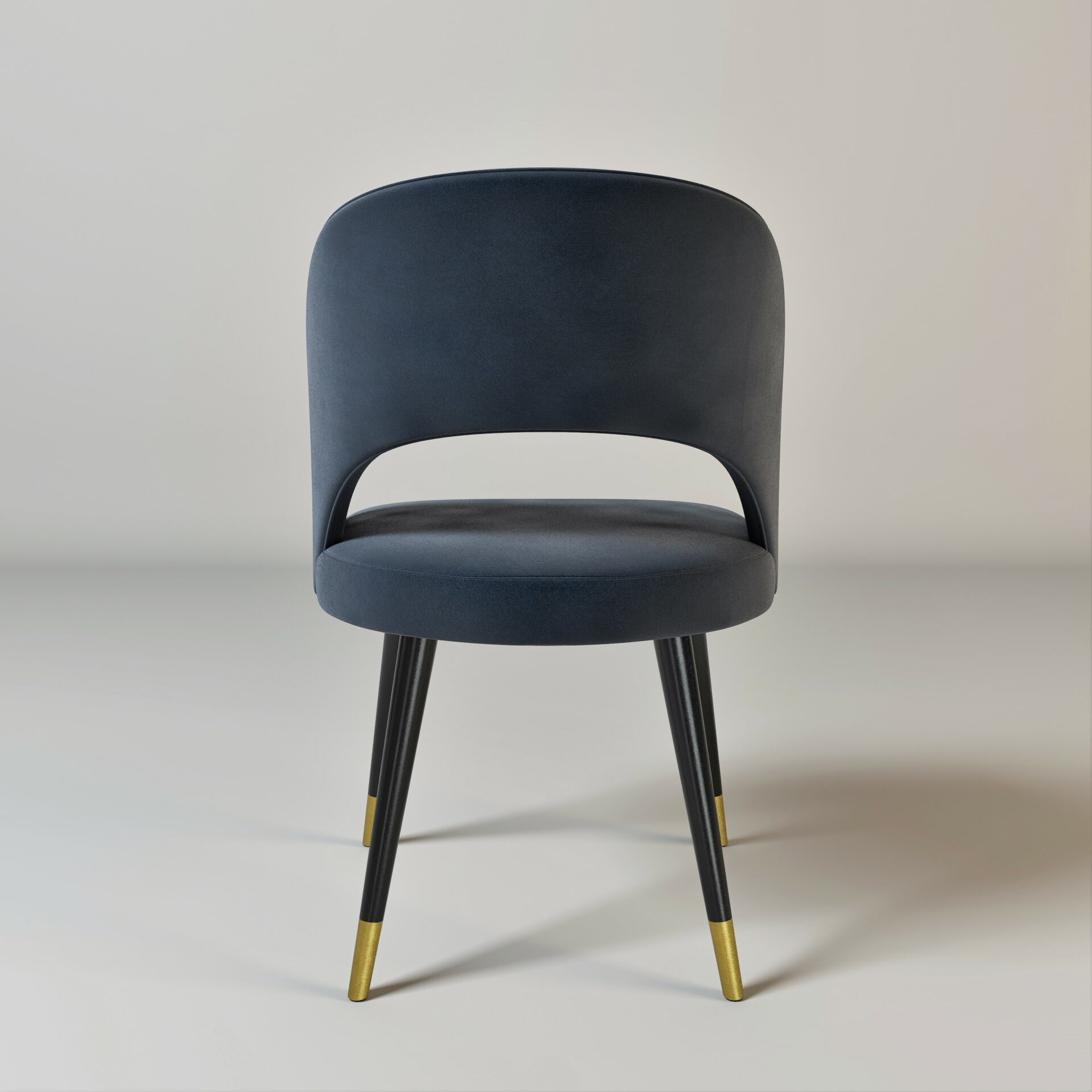 The Colby! A stunning and classic dining chair made with the highest quality velvet along with handmade wooden legs finished with stunning champagne gold tips. Incredibly stylish yet understated and perfect for any kitchen or dining area. This is the chic deep blue but please check out the other colour options available, to make the perfect choice for your style! The velvet used on the Colby is extremely hard wearing and suitable for commercial use. The Martindale rub count recognises how robust a fabric is and over 40,000 rub counts is classified as the highest grade which is top tier commercial use. The velvet on the Colby chair has >100,000 rub counts.