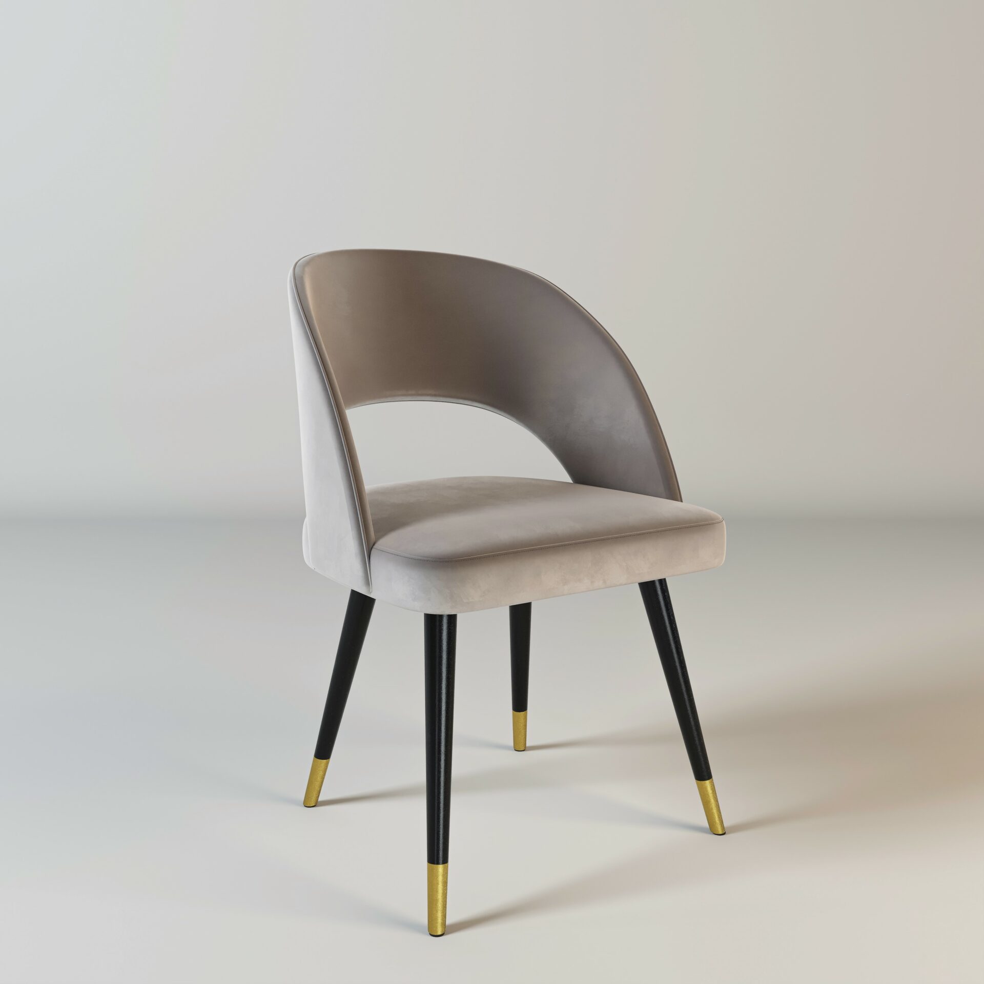 The Colby! A stunning and classic dining chair made with the highest quality velvet along with handmade wooden legs finished with stunning champagne gold tips. Incredibly stylish yet understated and perfect for any kitchen or dining area. This is the beautiful taupe colour but please check out the other colour options available, to make the perfect choice for your style! The velvet used on the Colby is extremely hard wearing and suitable for commercial use. The Martindale rub count recognises how robust a fabric is and over 40,000 rub counts is classified as the highest grade which is top tier commercial use. The velvet on the Colby chair has >100,000 rub counts.