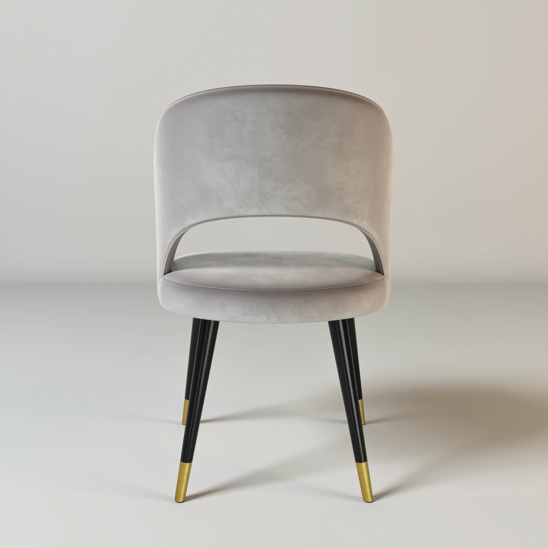 The Colby! A stunning and classic dining chair made with the highest quality velvet along with handmade wooden legs finished with stunning champagne gold tips. Incredibly stylish yet understated and perfect for any kitchen or dining area. This is the soft light grey but please check out the other colour options available, to make the perfect choice for your style!