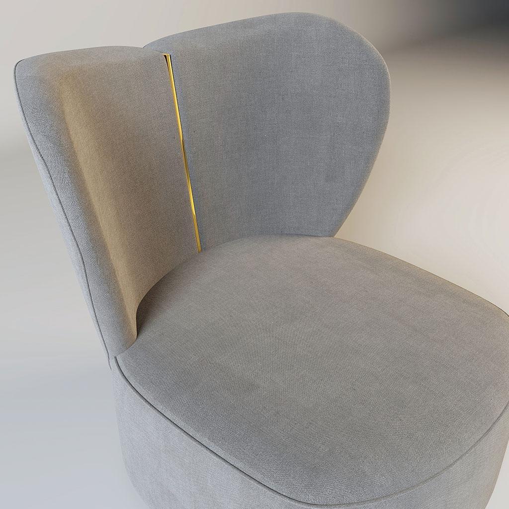 The Jasmine! Part of our stunning new collection of armchairs. This grey heart-shaped chair has a beautiful gold metal strip down the back. This comes in a variety of colours as well as with silver metal.