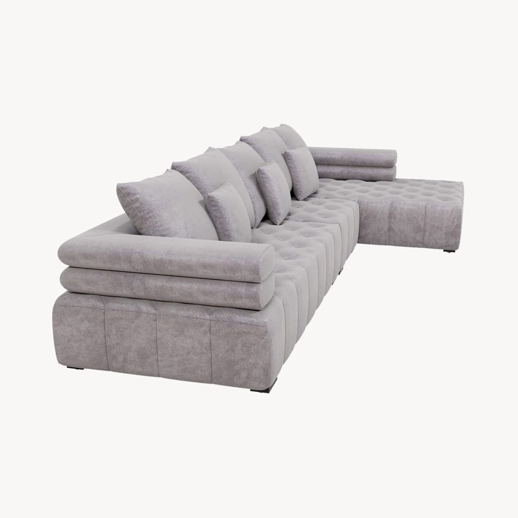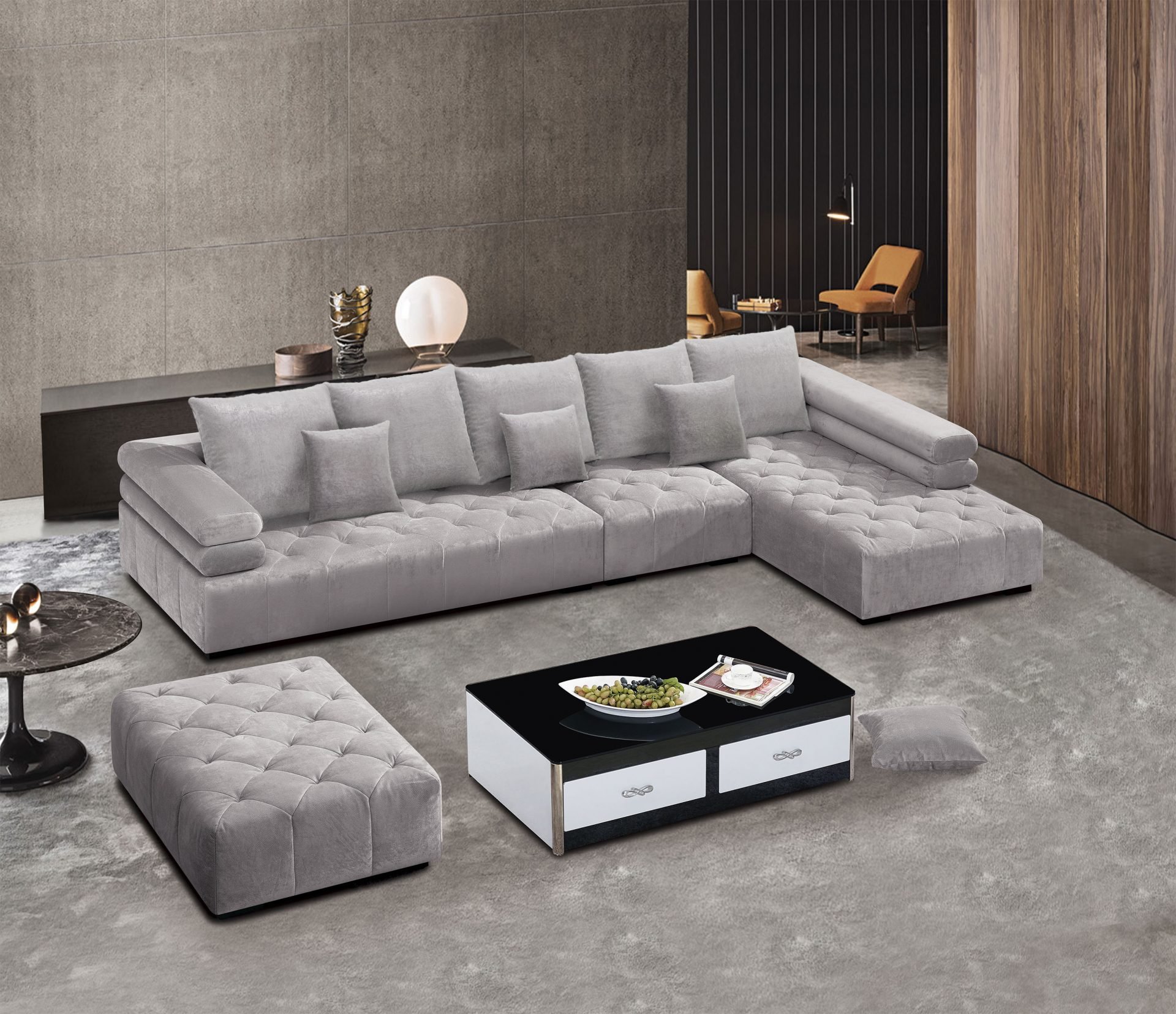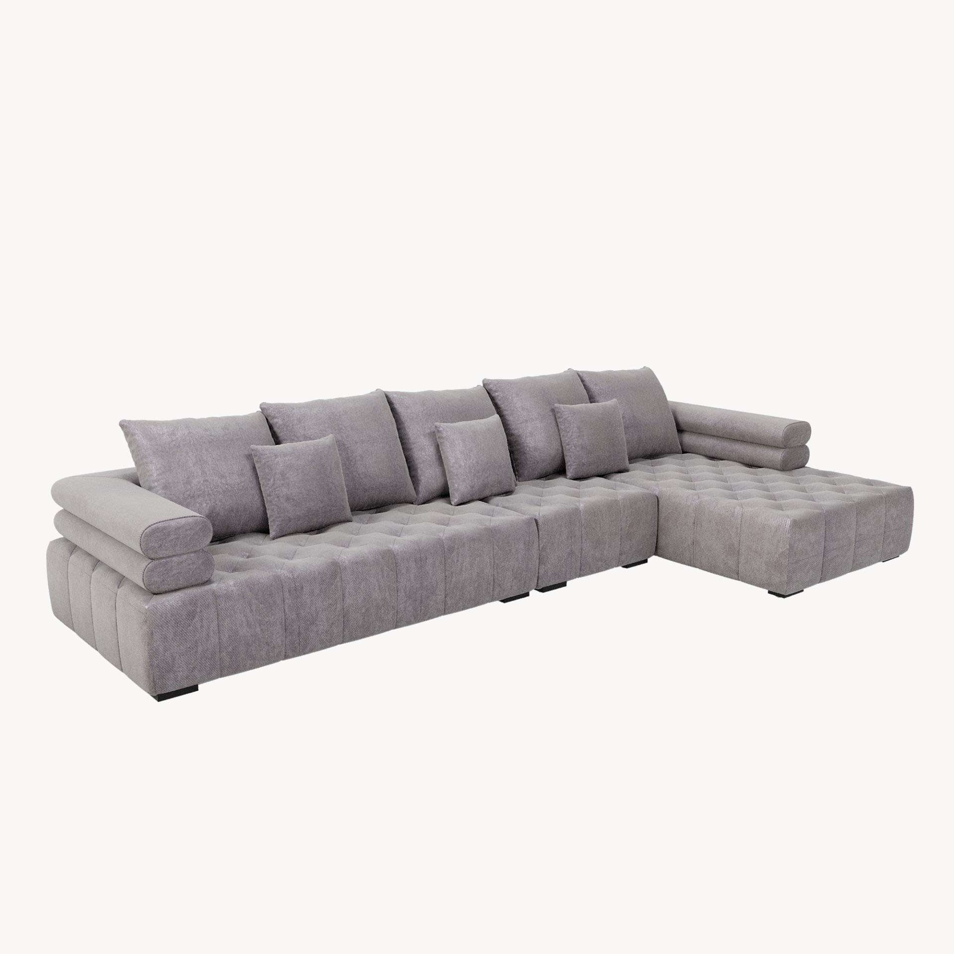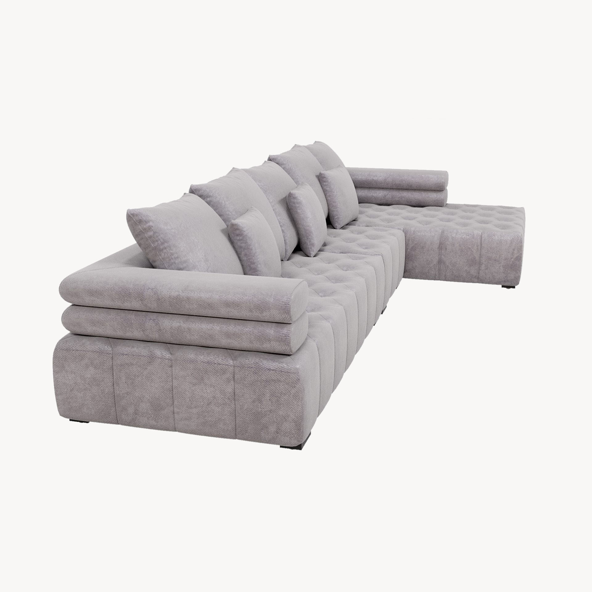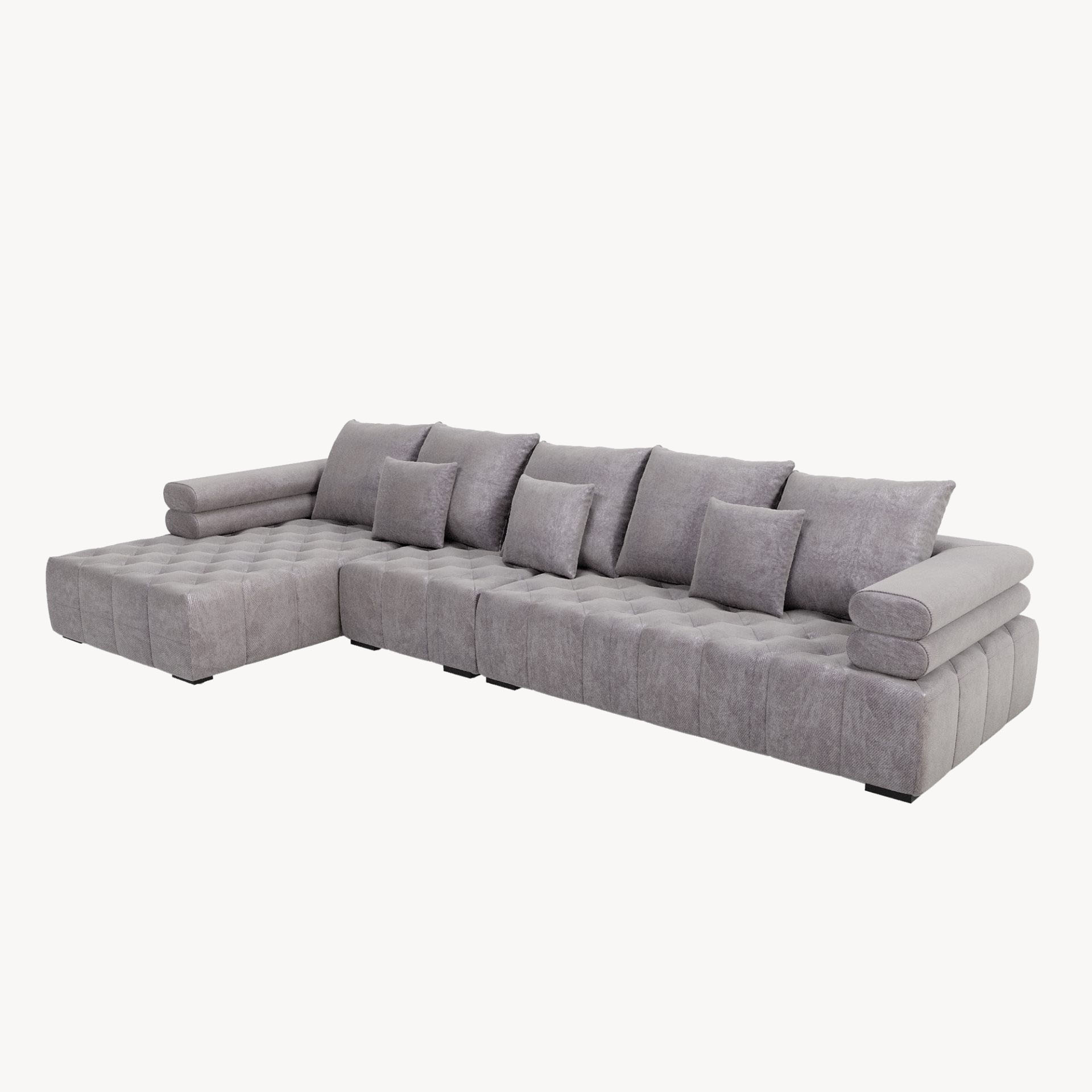 The Loriann! A Grey Fabric & Wood Corner Sofa. This item comes in multiple colours.