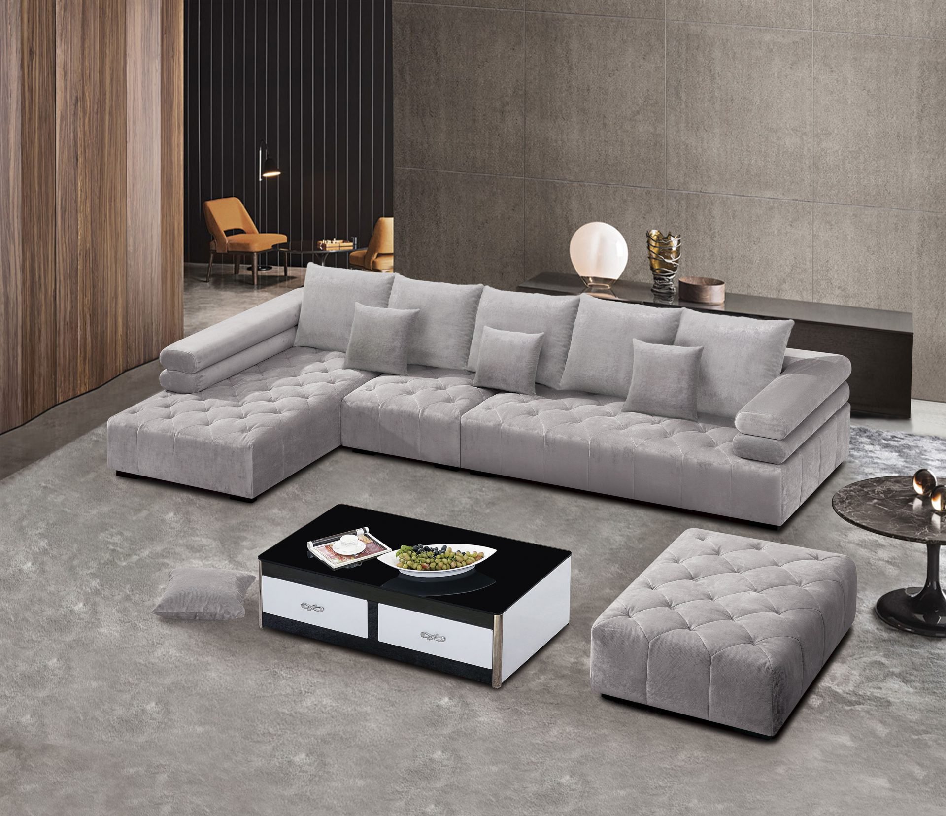 Time to chill! Our Loriann sofa is a wow factor and a chill zone all in one. With its button cushion detailing, it has all the design power and with those oversized fluffy cushions, you can soak into your sofa. Pair with the Alan’s foot stool so everyone can put their feet up and just relax!