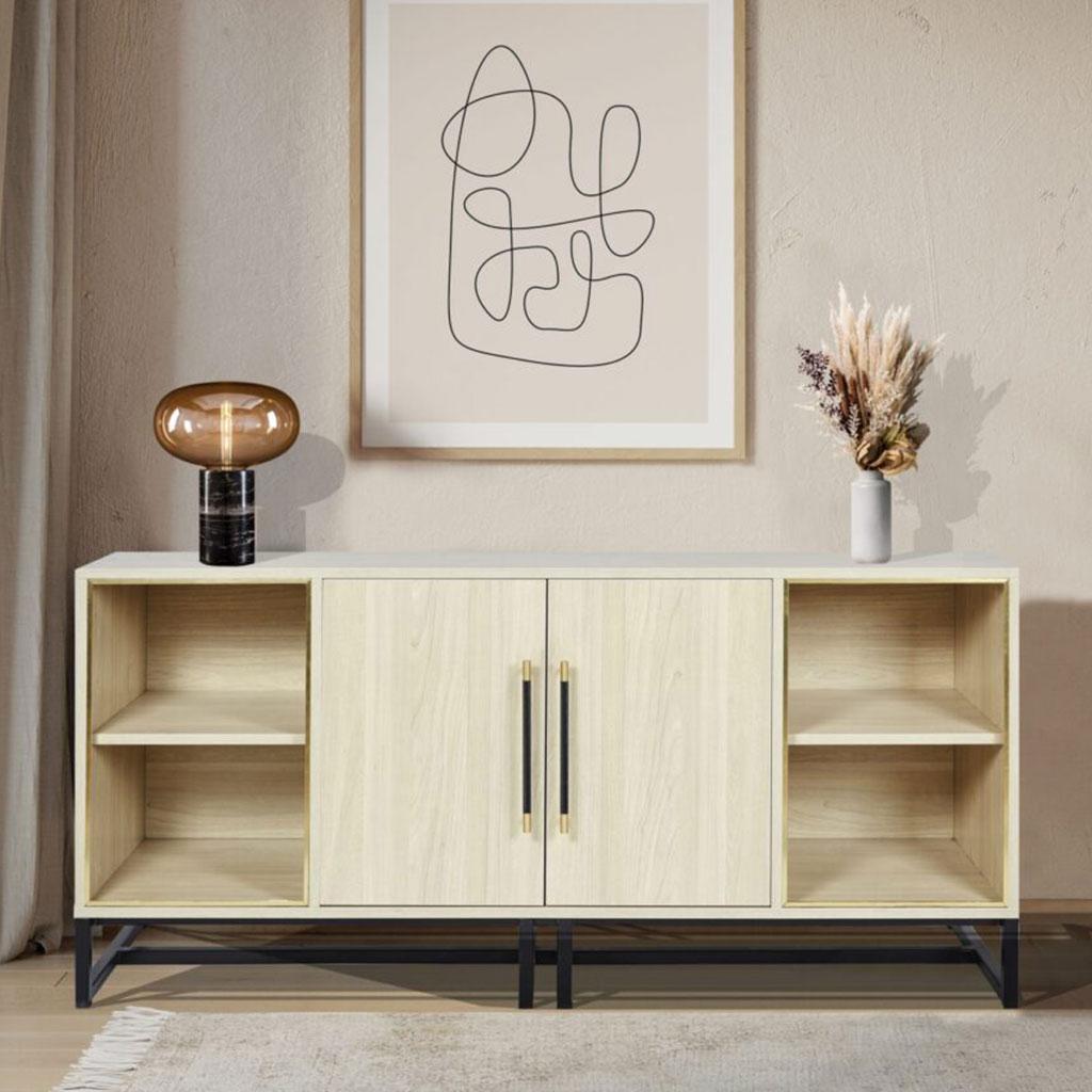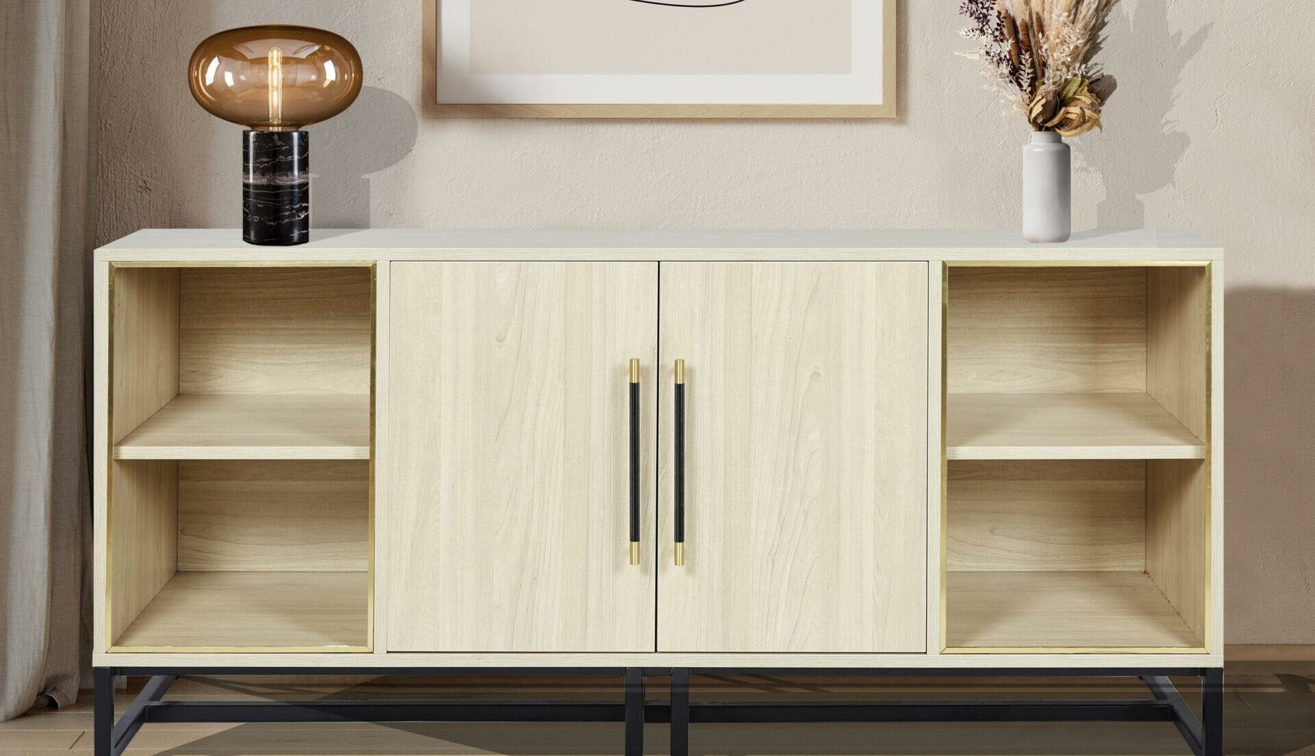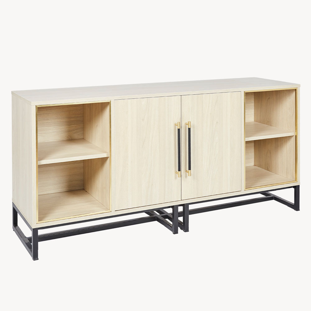 Lalo Light Maple Wood Veneer Sideboard With Black & Gold Detailing