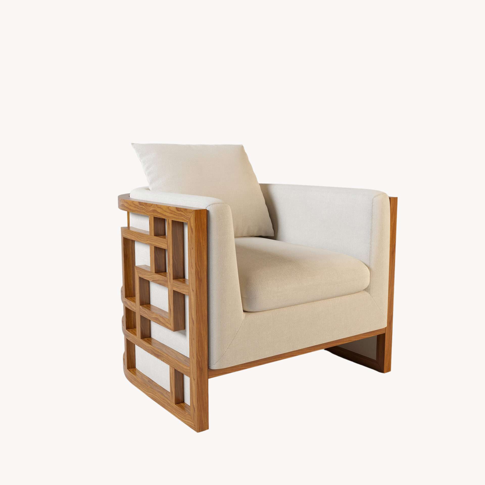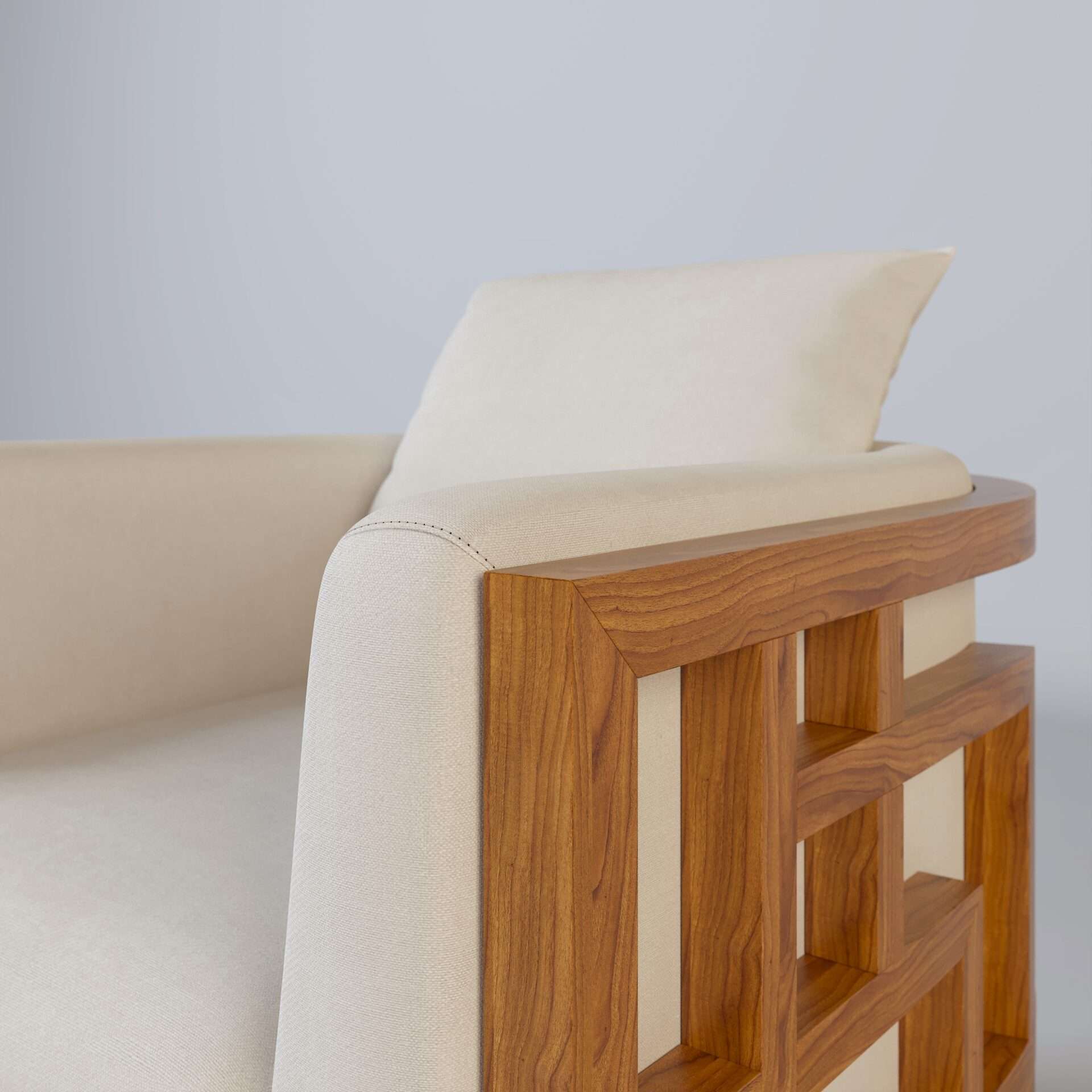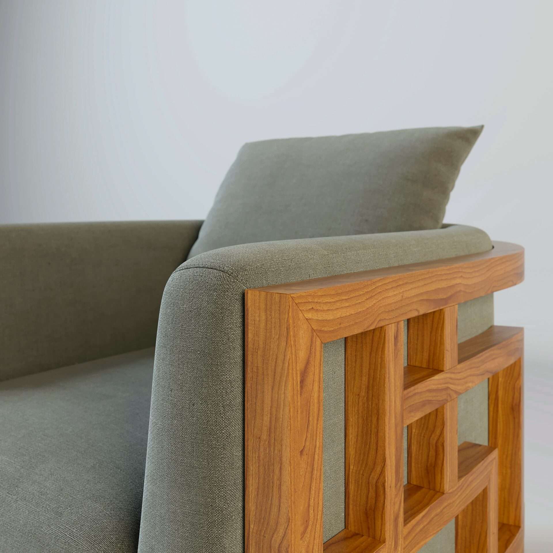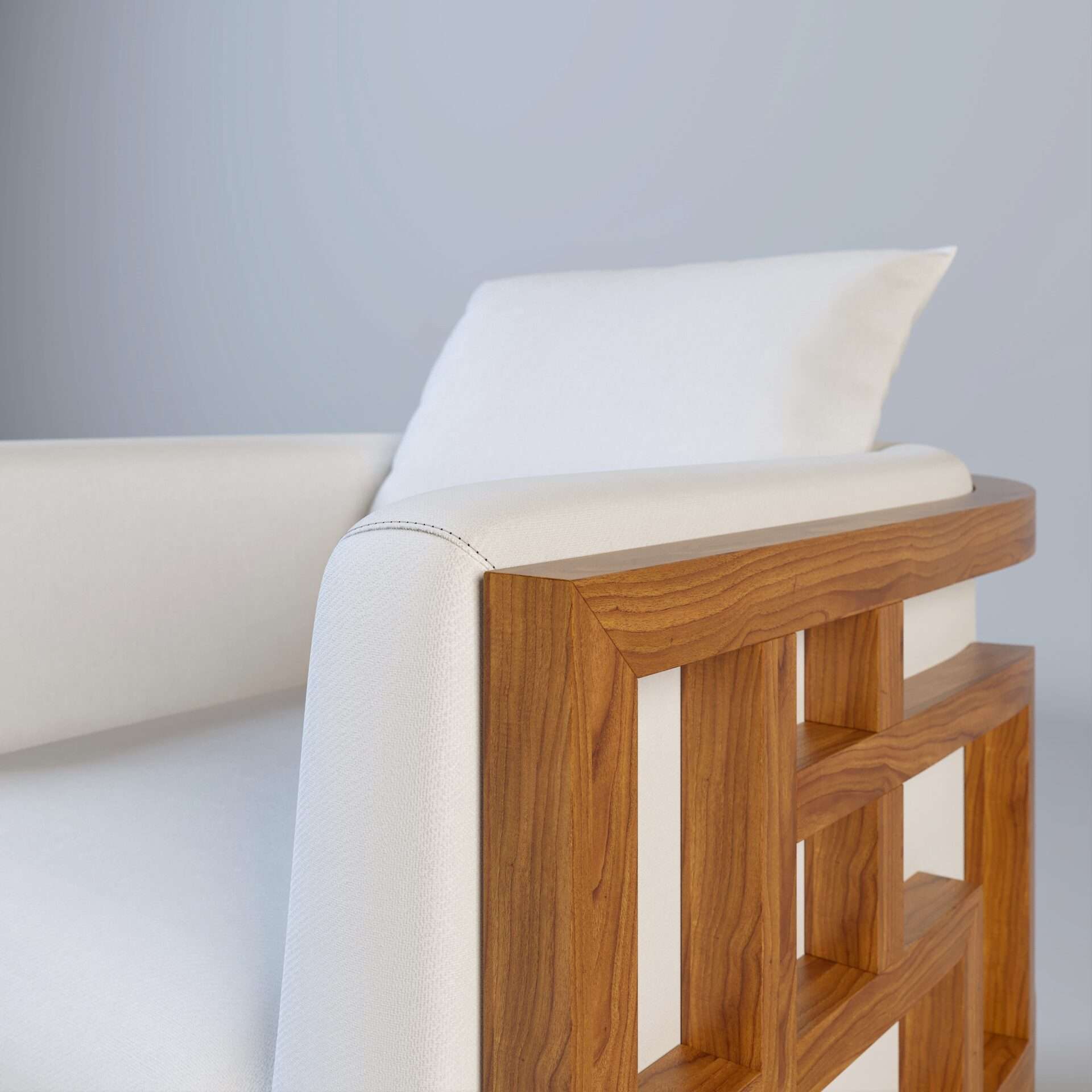 A wonderful pair. The intricate Grace armchair works perfectly alongside the more simple Dee sofa. The natural wood creates a beautiful modern, organic feel. The contrast of the lighter armchair against the dark sofa is wonderfully pleasing to the eye transforming any living space.