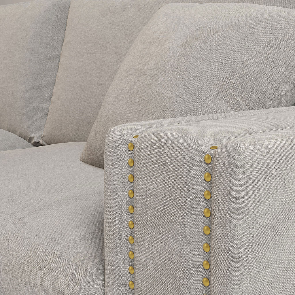 Our stunning Phoebe sofa. Extremely comfortable with foam and feather filling and effortlessly chic with the gold button detailing. The fabric is soft and luxurious whilst still being extremely hard wearing.
