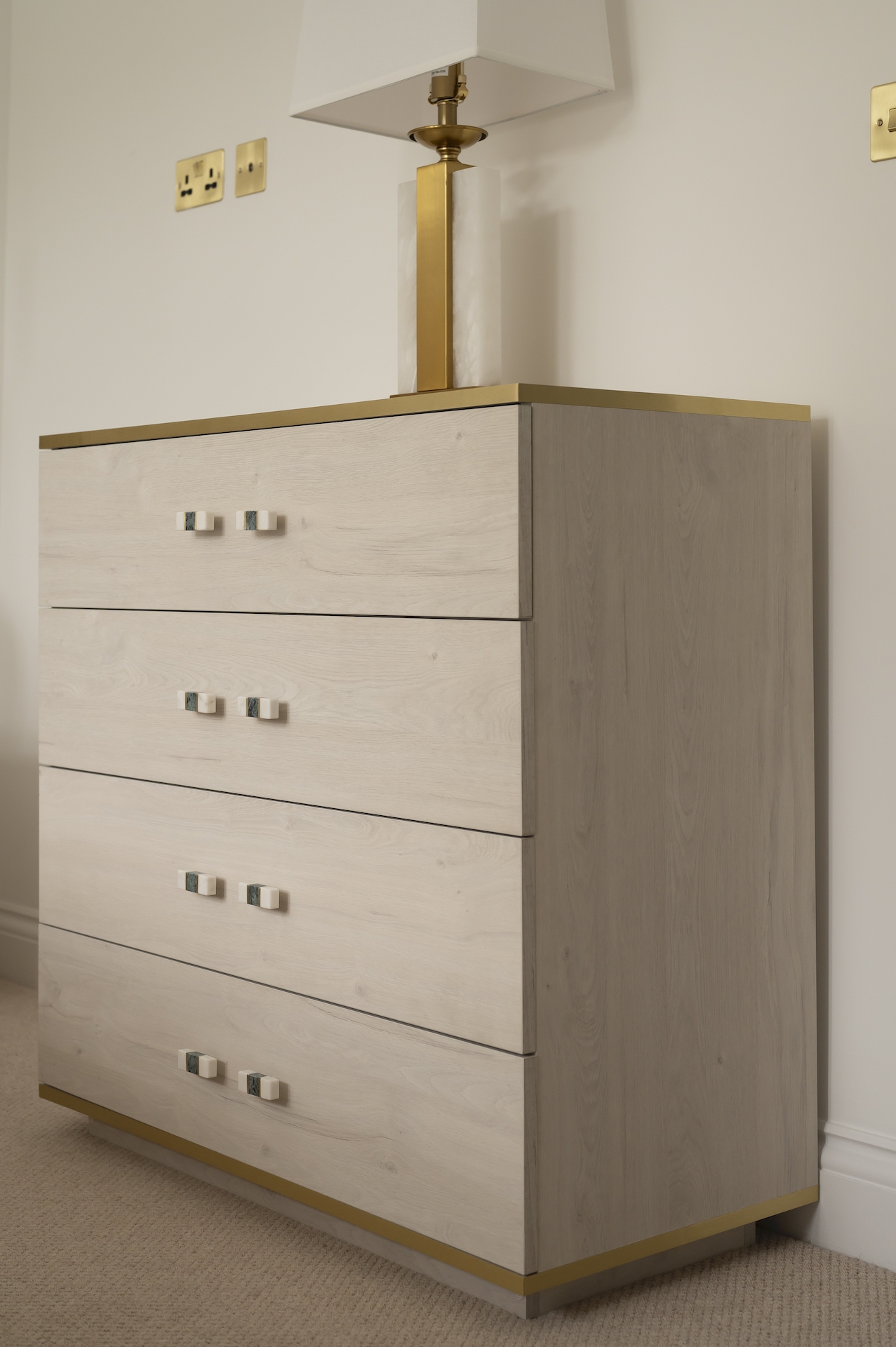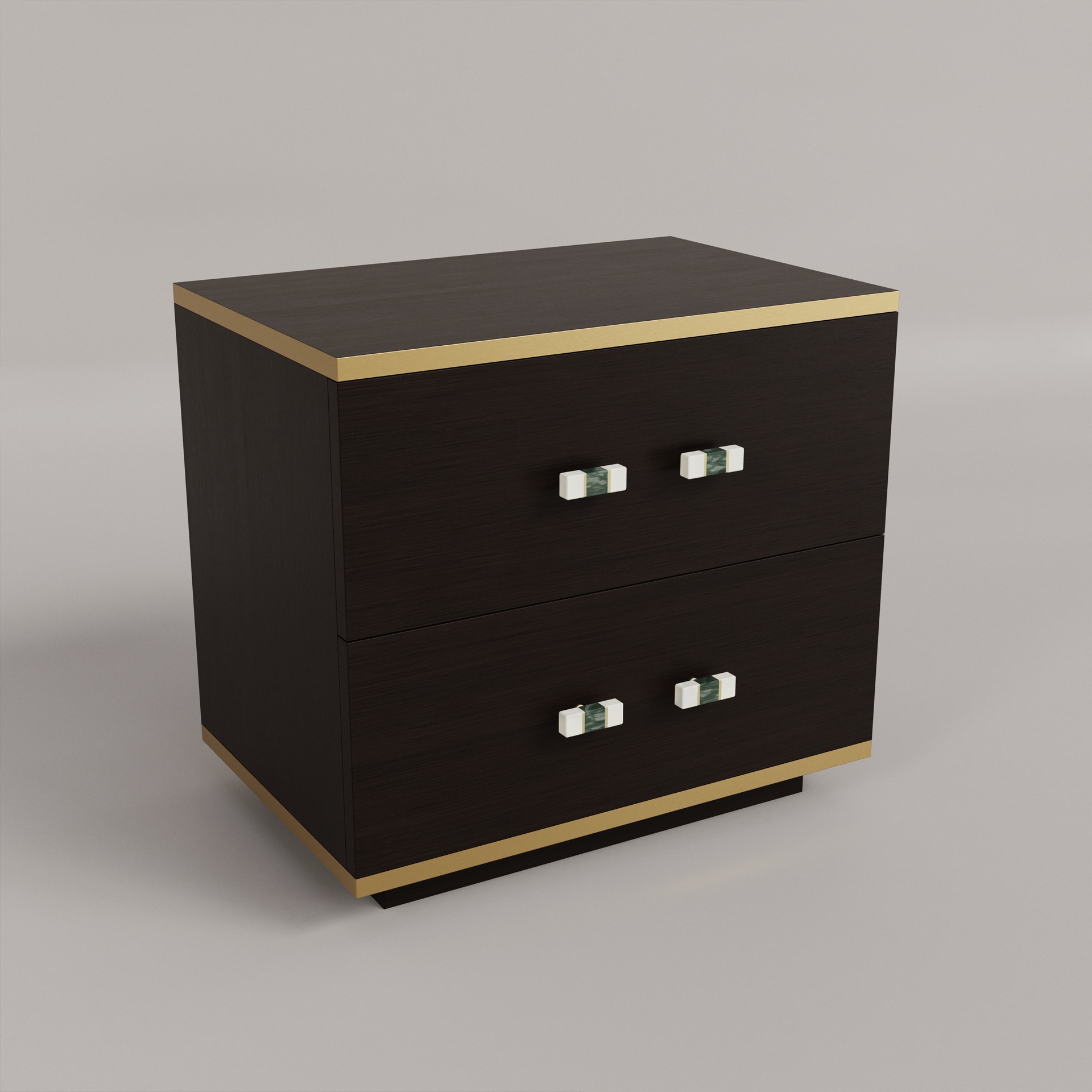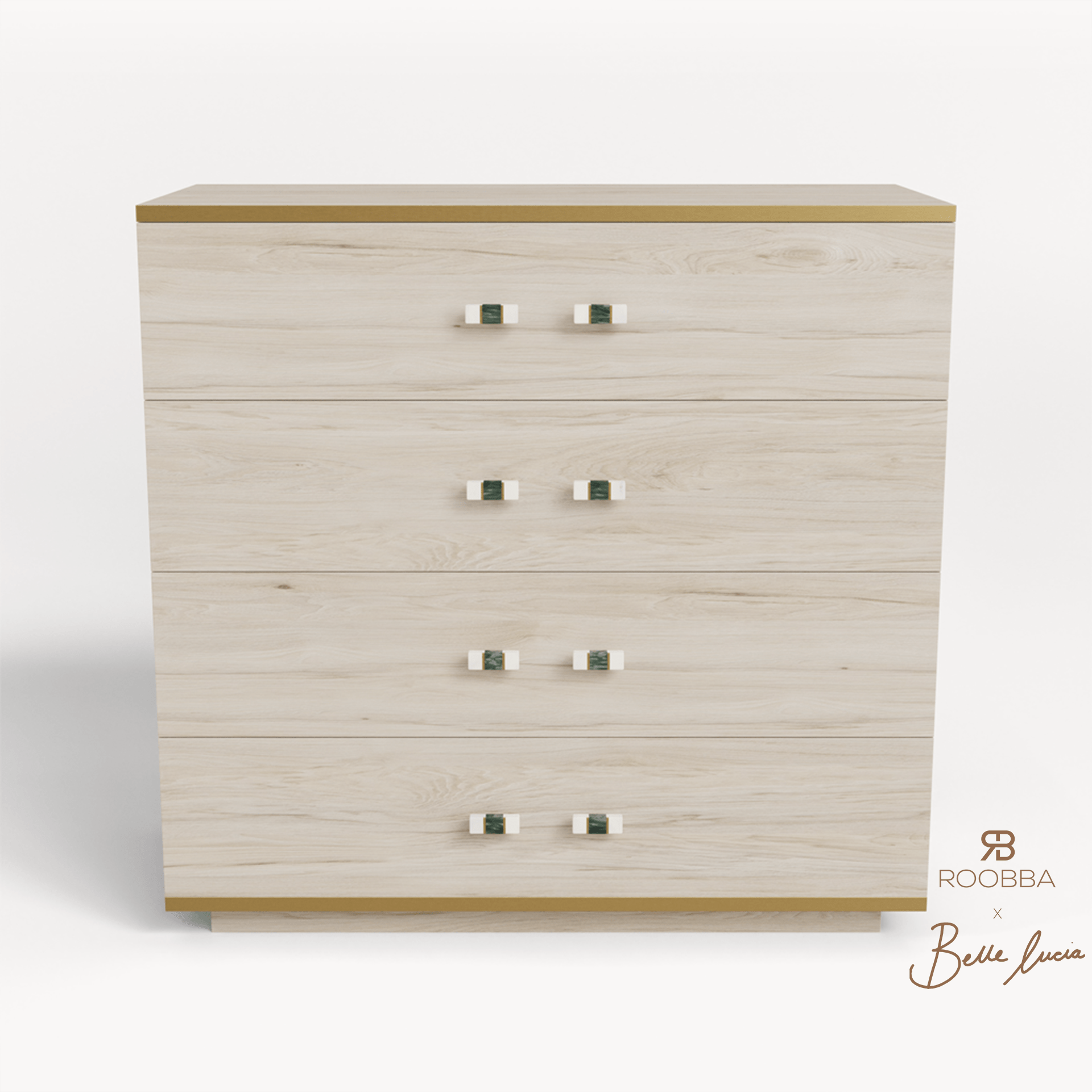 Designed for style and practicality, the RILEY bedside table and matching drawers are perfectly aligned to fit in your bedroom (or any room!) as your go to storage. Designed with metal detailing, and marble handles with small gold inlays, the cabinetry looks impressive in any room, beautiful in neutral tones or stand-out in your colour choice. With natural marble handles with green Verde Indio marble and cream and grey Carrera marble. the handles are the added detail. Our bedside tables and drawers are carefully hand made with recycled wood veneers, sourced from UK forests and are graded as top level environmentally friendly as the wood veneers are sliced from renewable tree species. They are extremely wear resistant, and are finished with an extra coating to enhance stain-resistance and scratch-resistance by 97.3%, which also makes them wipeable to ensure non-absorbent properties. From our customer feedback and research, our cabinetry has the highest rating out of 5 stars in relation to style, everyday usage, wearability, non-absorbent abilities, stain and scratch resistance.