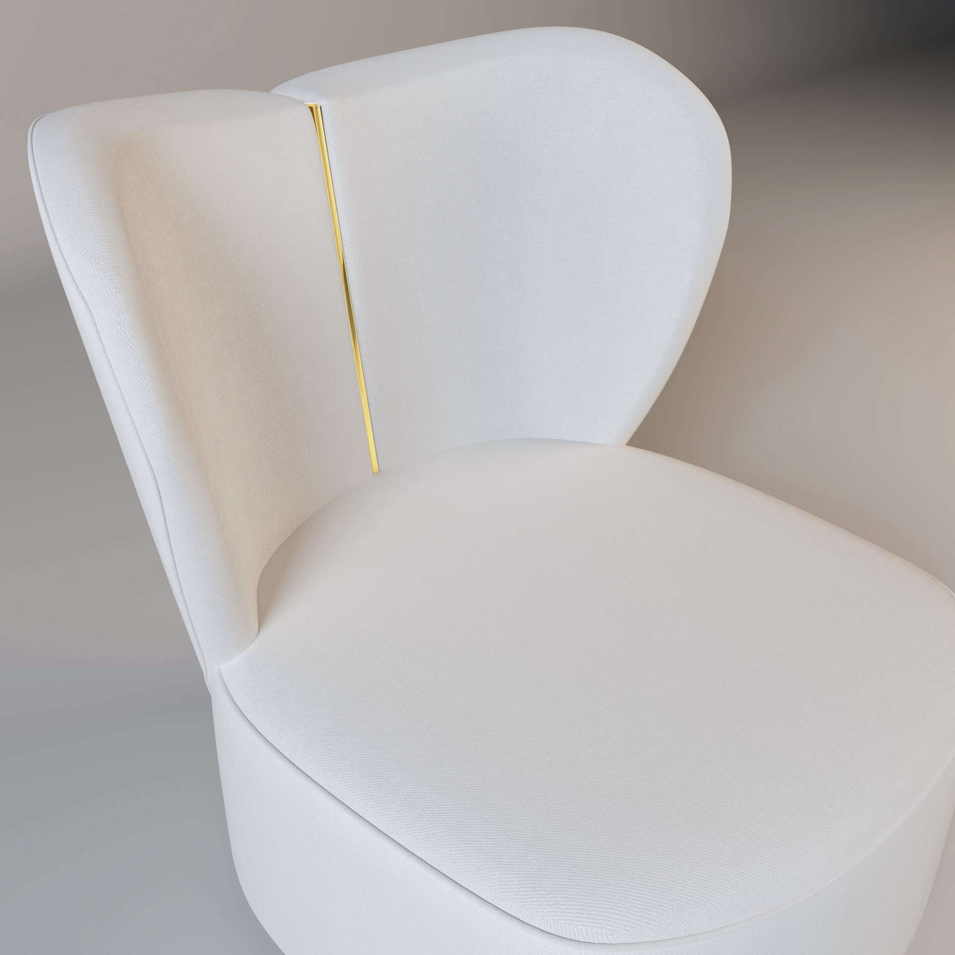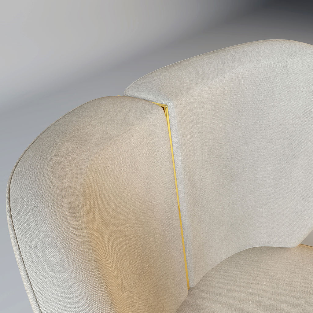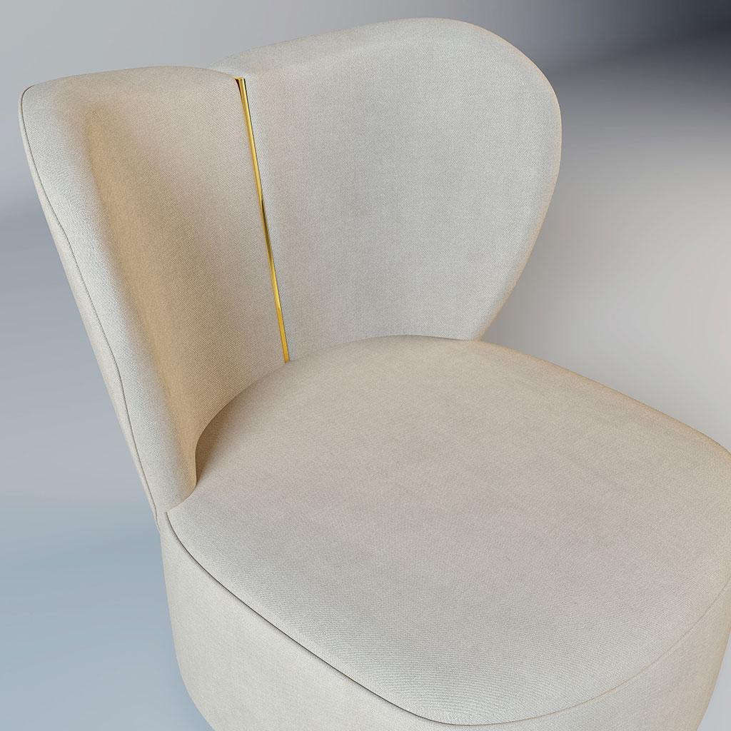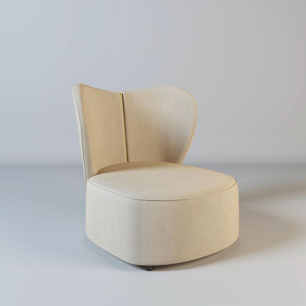 The Jasmine! Part of our stunning new collection of armchairs. This beige heart-shaped chair has a beautiful gold metal strip down the back. This comes in a variety of colours as well as with silver metal.