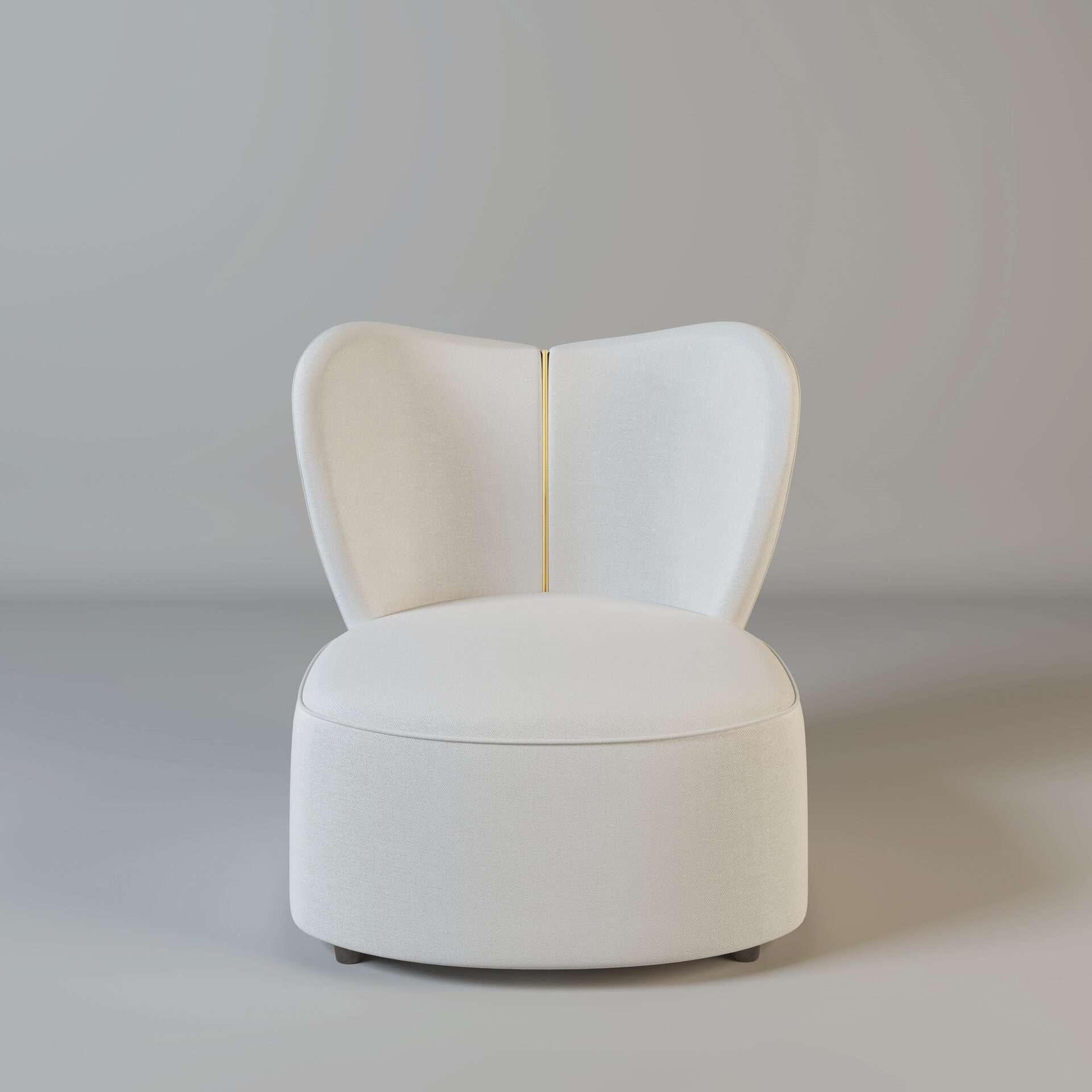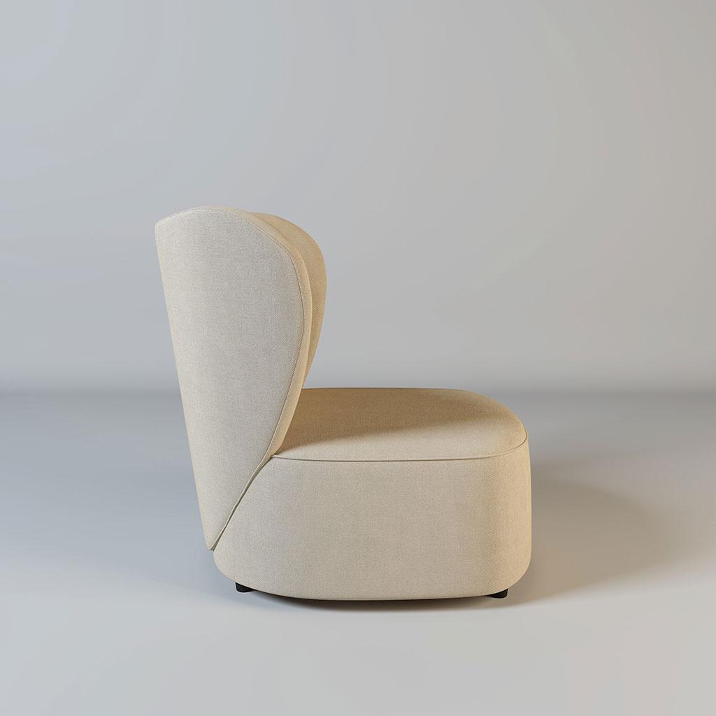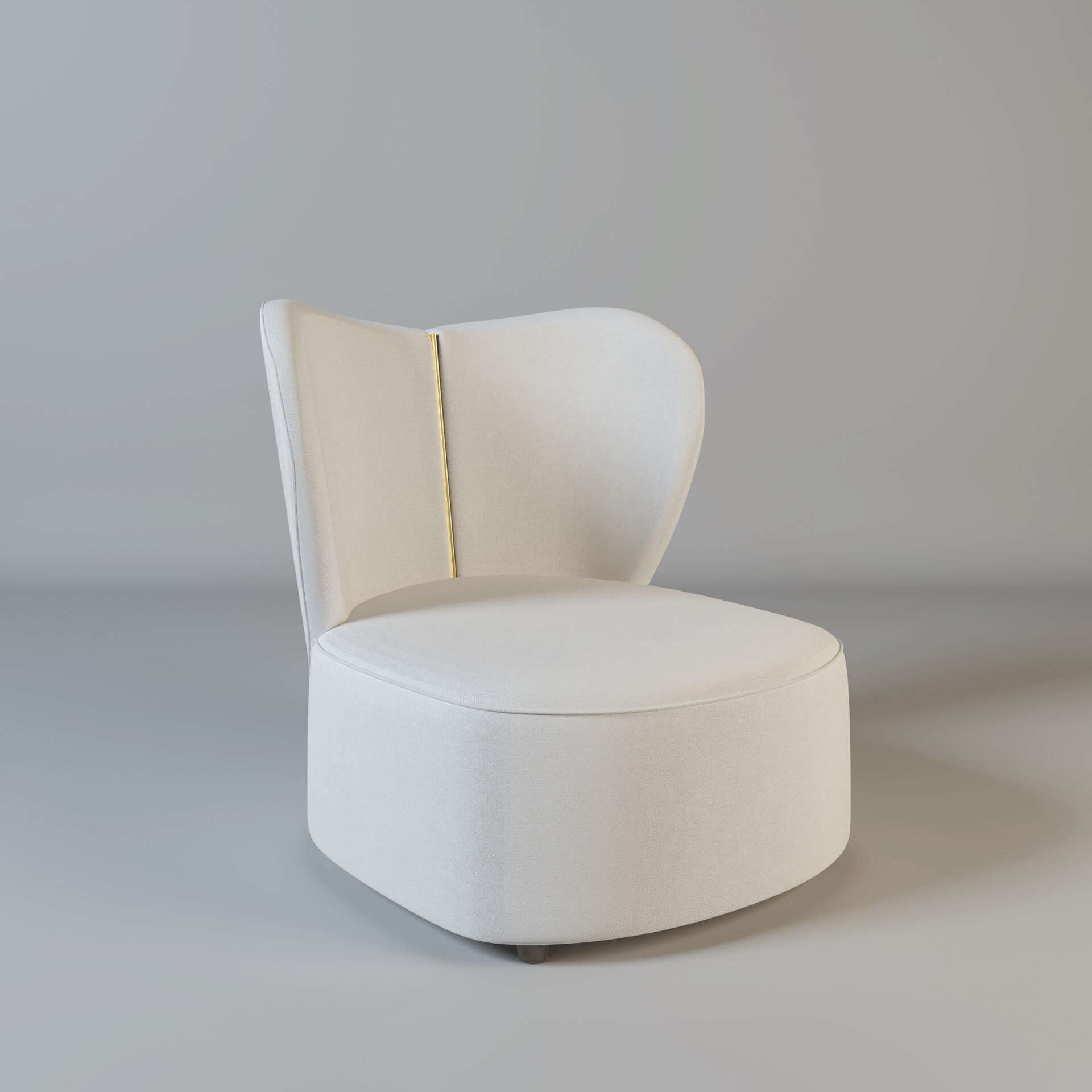 The Jasmine! Part of our stunning new collection of armchairs. This beige heart-shaped chair has a beautiful gold metal strip down the back. This comes in a variety of colours as well as with silver metal.