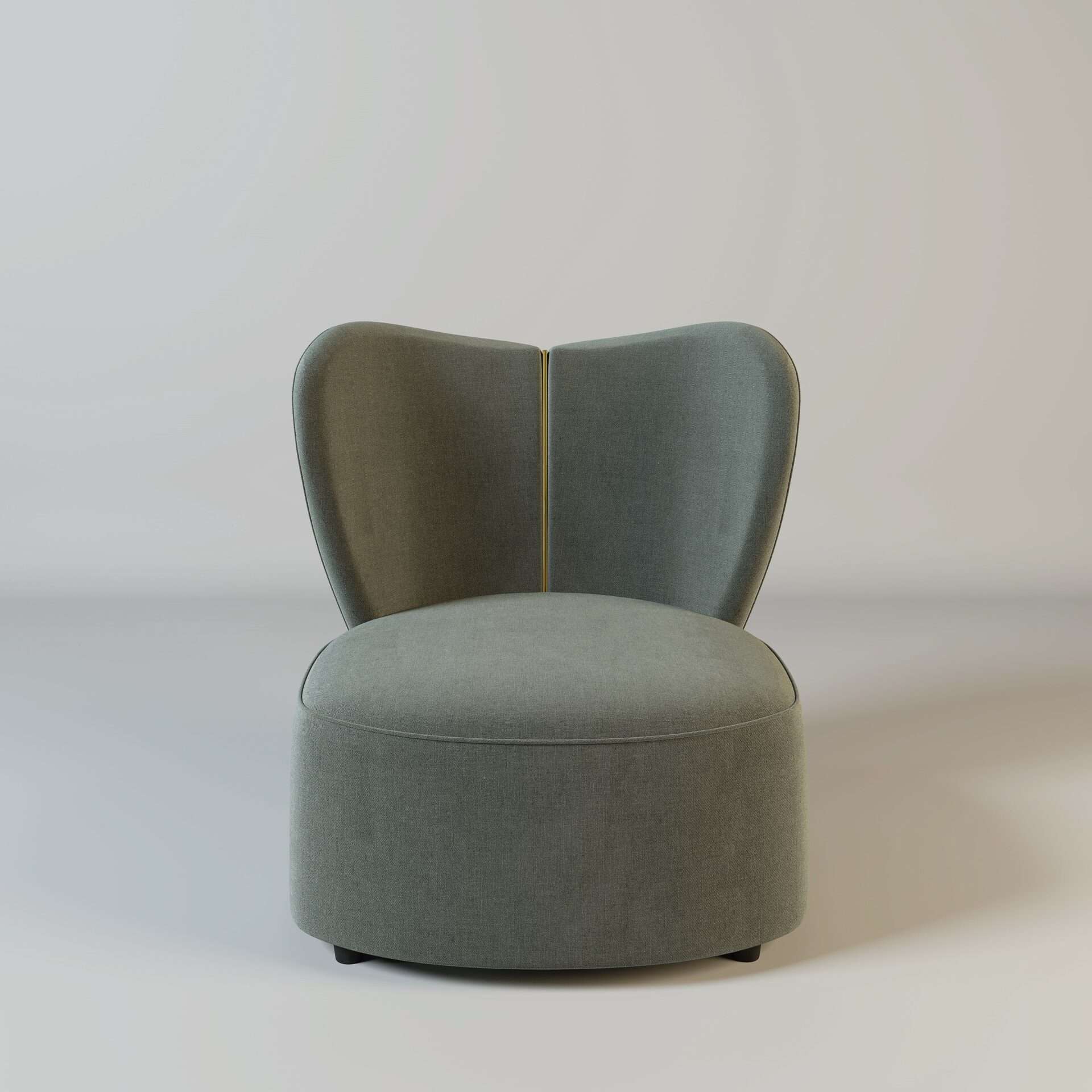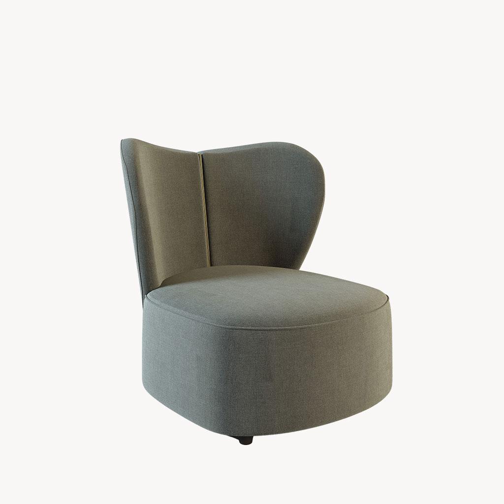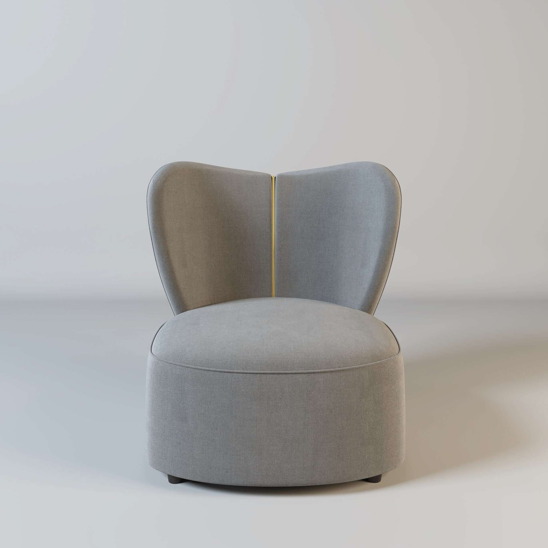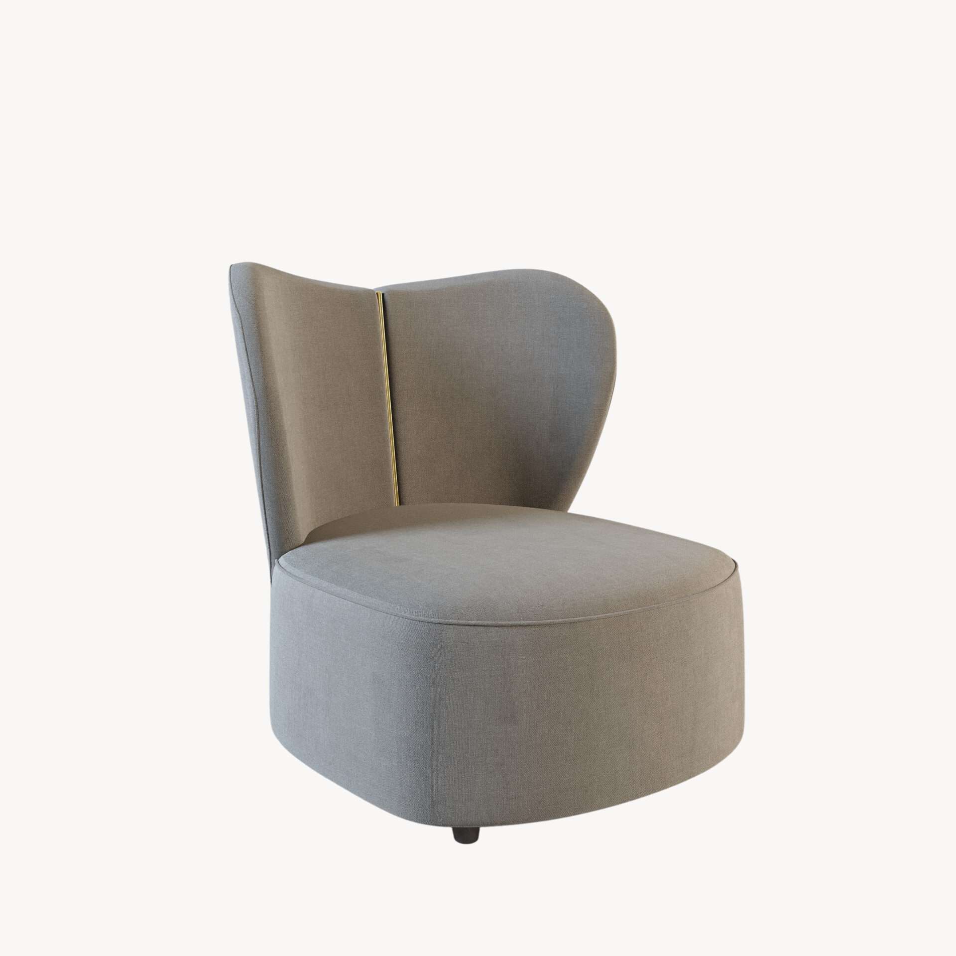 The Jasmine! Part of our stunning new collection of armchairs. This grey heart-shaped chair has a beautiful gold metal strip down the back. This comes in a variety of colours as well as with silver metal.
